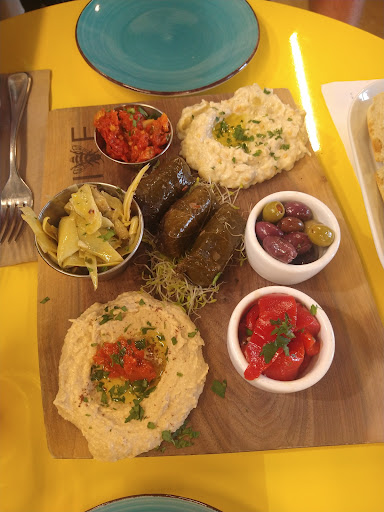 We also ordered the Mediterranean Board which was ok I did enjoy the hummus and the garlic roasted tomatoes. The dolmas were hard and the rice was crunchy almost. No flavor. Dolmas are my favorite so, I'm partial to authentic dolmas made by a Mediterranean grill. It came with 3 I took one bite. My husband enjoyed the artichokes and banaganoush which had a slight smoked flavor. That was interesting and tasty.