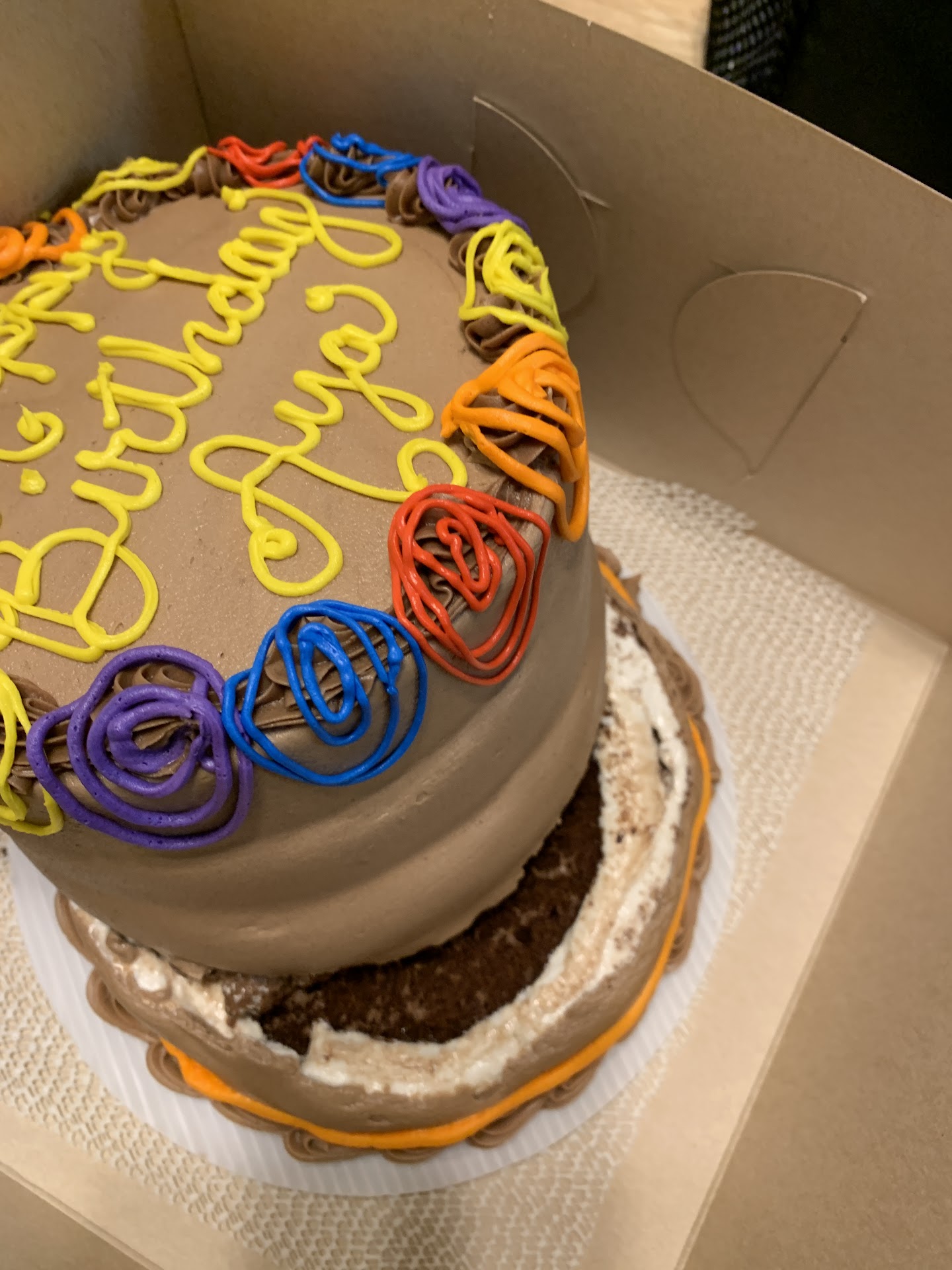 Thought this would be a good choice since the reviews praised seem very well but that wasn’t the case for me unfortunately. Got a cake for a friends special day and decided to go with Timothy’s. I asked for primary colors on a chocolate cake and for a pickup at 1. Day comes around I go in for my pickup. It is 2 o clock, an hour late and someone comes out asking if it’s for a boy or girl. Don’t know why this mattered since all I asked for was primary color confetti. Turns out they are still in the process of making my cake an hour late and I’m just sitting there because they keep saying it’ll be right out. Finally I get it and see it is rainbow colored. When I mention that it was supposed to be primary they say “yes this is primary rainbow colors.” Now for someone who decorates and does art, you’d think they’d know primary colors and rainbow colors are not the same. And if you failed basic color theory then a simple Google would show you rainbow is not the same. They still argued with me and insisted they were right, that those are primary colors. I tried to state it as a fact and to look it up but they didn’t care. My drive was 2 minutes and when I got home the cake collapsed. Straight drive no bumps. I’m not a cake maker so idk if it was just poorly put together or since it was rushed out late it didn’t have time to set . When I called and txt to ask about it they said manager Cathy would get back to me when they have time . That they are aware but have other deliveries. mind you I paid and technically the cake I paid for had still not been delivered . It’s Monday still no call so unfortunately it came to me having to leave me review and putting it on our social media. This place was a big let down on someone’s special day, the one thing you’d think they’d get right. Completely dropped the ball, go else where. Take a look at the photo for yourself, tell me if this is what you’d want for...