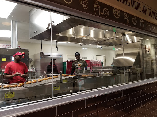 It seemed that the donut making machine is behind a see thru glass wall with Ample room to be entertained while standing in line. It made the line seem to move faster.