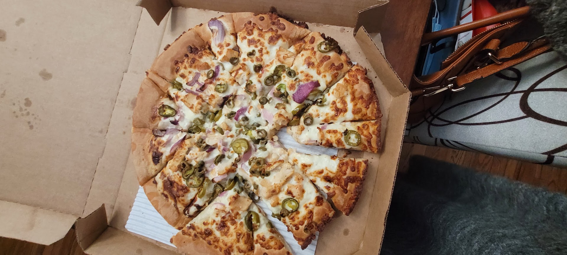 The cheese sticks were over cooked and hard like a crouton; there was not adequate cheese. The cheese pizza was overcooked as well, looked as though the grand babies cut it, and not sure why the cheese shifted to one side. The chicken pizza had the same shift of cheese and ingredients. Also, they must have been training the new girl how to cut a pizza and then how to vote in squares on the same pizza. The boneless wings were supposed to be honey Bar B que. Hmmm.....I don't think we said to hold the sauce.