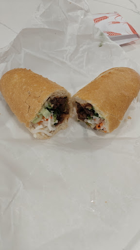 This new cute little shop is an instant favorite of mine. While riding in my friend's car I saw it and said, "Oooh! A Banh Mi place! I can't wait to try it!" Little did I know they had only be open a month. So today I did try it and it was delicious! I ordered both a shredded pork banh mi and a red pork banh mi along with a tropical peach tea with dried salt plum. A little extra sauce was free too! I ate half of each sandwich and was so pleased (especially to have another half of each for the next day)! They bake their own bread on the premises and you can tell what a difference it makes. The prices were very reasonable too! The staff was courteous and friendly and it was nice and clean. I can't wait to try the other sandwiches. Before this, I had to go to the MGM casino in the National Harbor for a banh mi and it was $20! Not only did I get a banh mi place to go to, it is near me! Try it out! If you like banh mi or haven't had one but like Vietnamese food, you will be happy too! They have veggie sandwiches too with veggie sauces.