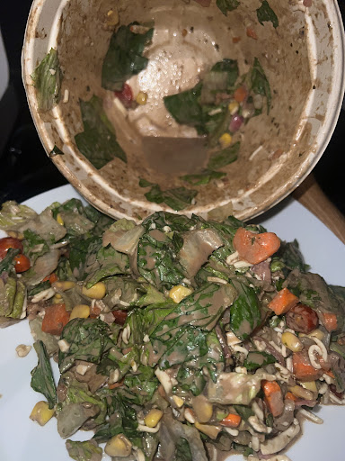 Salad itself was fresh, great portion. I think my only issues was that it felt like there was barely any dressing on it. I could barely taste it. I had my dressing mixed in. I think I will return and either ask for the dressing on the side or extra dressing. The chicken however was seasoned and the crispy bits were great so that did add a bit of flavor. Would return, a much needed addition for a lunch option...