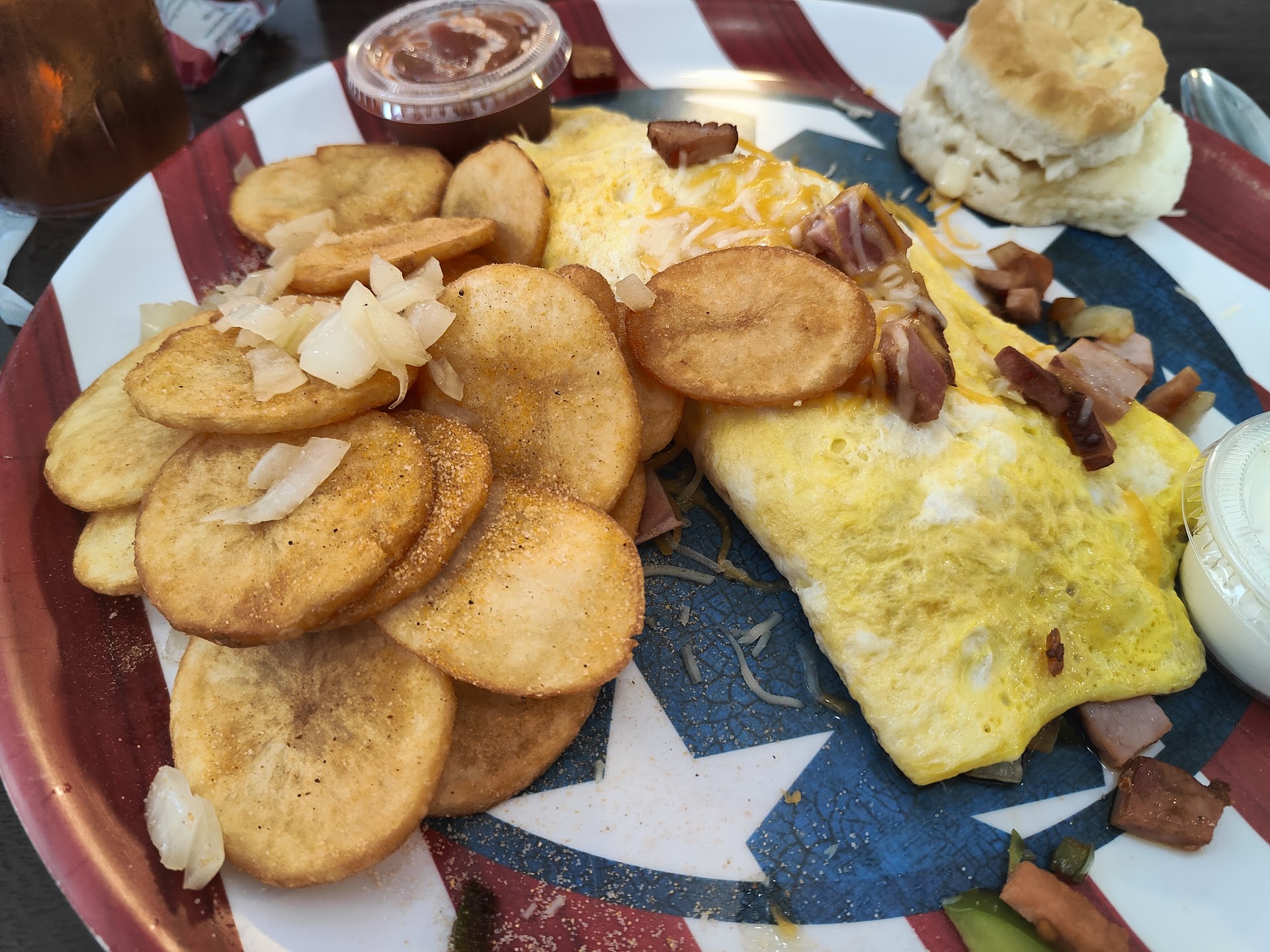 Read moreNot sure if this was an "off" day or what as I have eaten at Olde Towne numerous times and have recommended it and taken others in the past. I was busy at work so I ordered lunch for pickup. I ordered the grilled chicken Caesar and a cup of baked potato soup. According to the menu, the salad should have been around $10 and the soup should have been around $4. They told me the order would be ready within 10 minutes and I promptly walked over. When I picked it up, the order came to $18 and some change. Not a huge deal as I understand prices change. When I opened up the salad the lettuce was drenched in Caesar dressing. It did have a generous portion of sliced chicken which was great but just too much dressing and the lettuce was pretty wilted. The "cup" of soup came in a small container with a lid and there were probably about 4 tbsp of soup in there. The "cream/potato" portion of the soup had no taste and it was like it had been made with cornstarch. There were several pieces of bacon in, but otherwise the soup was tasteless. Pretty...