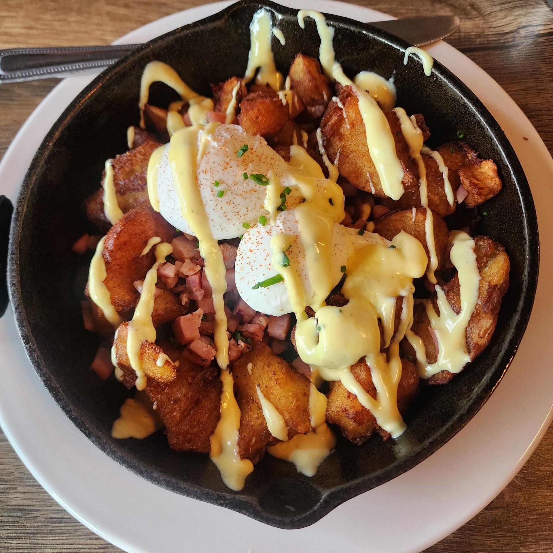 Benny skillet was savory, the potatoes were crisp on the outside and soft on the inside, and the poached eggs were cooked fabulously. We did get the hollandaise sauce on the side but later added it to the food. It went really well together.