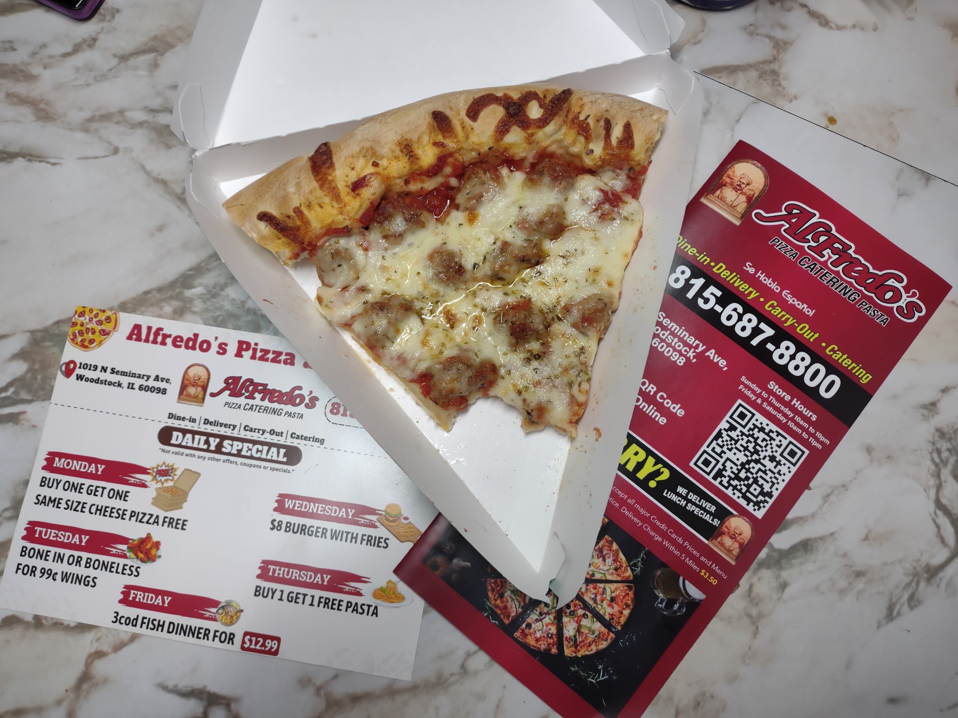 Ā Ā Ā Read moreI ordered a pizza from Alfredos that was the worst I've ever had. It was reheated and over cooked,the meat was a bit off,did not have on it what I ordered. I tried speaking to a manager/owner. The man I spoke with claimed owners/managers were not available. He asked what my call pertained to. I told him. He offered me a credit or a new pizza. Well I call in for my new pizza and he says I called 2 hours after the yucky pizza was delivered. I have caller ID!!! He wouldn't honor any new pizza he claimed he'd give me. Lost a customer,I will put bad reviews where ever I'm able. Shoddy business,shoddy owners and under par...