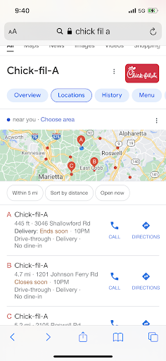 Read moreSo I go to cfa probably 3 to 5 times a week. Mainly to the Northside drive cfa ran by John Diamond. His stores are always super clean and always busy. Plus every employee is antentive to your needs. I never get that feeling in this store(03573). We had to wait a while for them to acknowledge us to get some of the sauces. The employees and manager were leaning against the counter. While the counter person was busy getting our order ready. I kinda felt like the manager is just trying to be buddies with the employees instead of managing the store. This attitude was about the description of the lobby. The floor was really messy with crumbs all over it. There were at least 10 trays on each trash can in the lobby. There were several tables that were in need of cleaning. Another interesting thing was all the people behind the counters in normal clothes. I don't know if they were friends of the employees or what but I don't think it was very professional. Then as we are leaving the manager had left to go outside to go hangout with some more of her friends instead of managing the store. I love cfa and this one is really ran below the chick fil a standard. Maybe they need better training and need to go shadow some of the other stores. Excluding the Roswell road location...