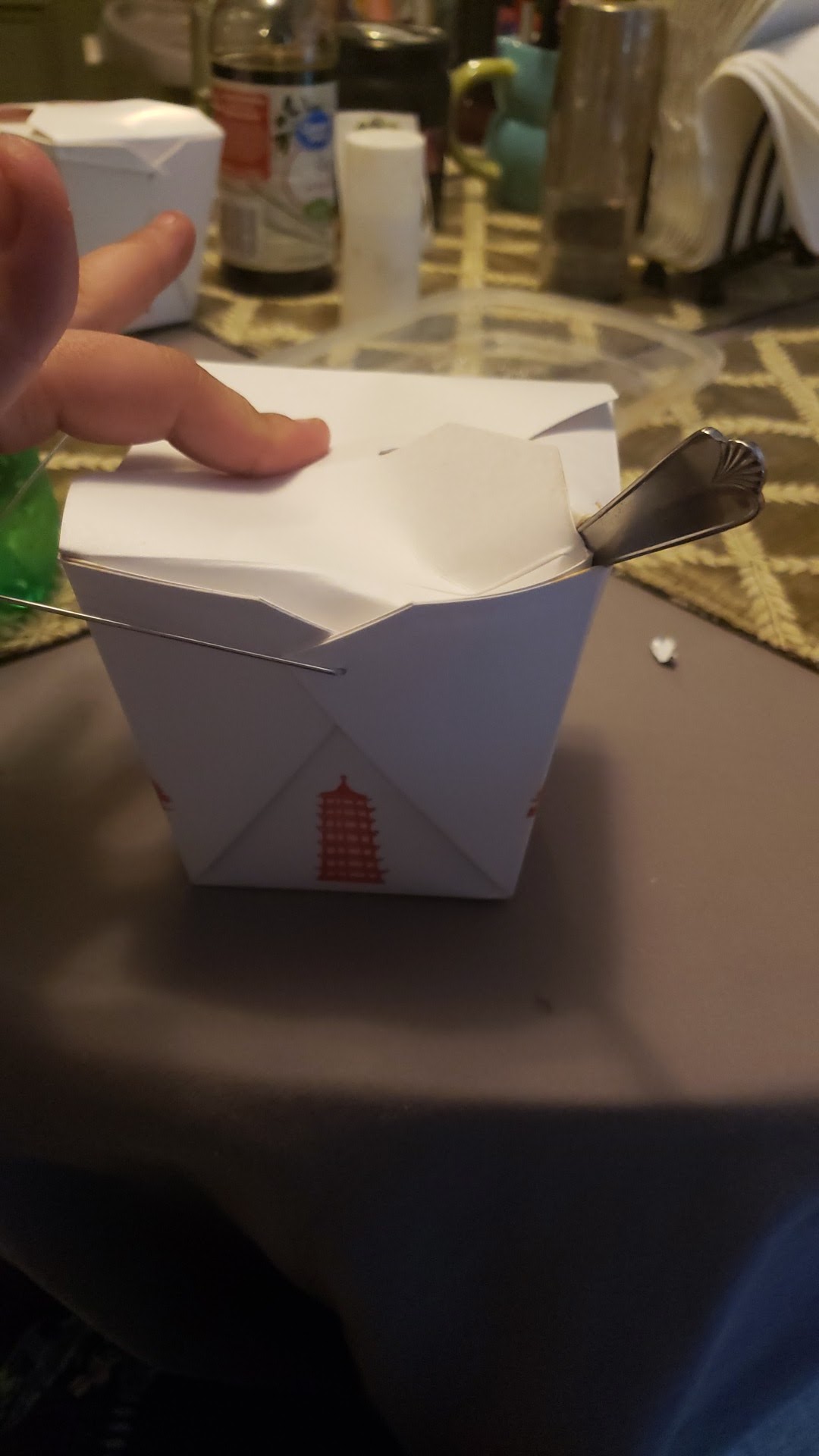 Read moreI have been here twice. The last time I ordered Carey out chicken low mein, I was just about finished eating and looked down and noticed something that was a darkish color in my noodles... I started to mix it up thinking it was a vegetable.... but after taking a closer look I realized that it was DEFINITELY NOT something that I should be eating. I took it out to inspect it and it looked like what I could only call a "grub".... it was some type of large insect or larvae of a leather jacket grub.... I wish I could post the pic here- you can see it on my yelp review. I was completely disgusted. This is not something that could just end up in food by accident from being in vegetables. I'm the type who understands that things happen when it comes to restaurant food... a fly can make it in your glass, a hair is possible since a Human IS cooking your food.... silverware can be dirty..... but...