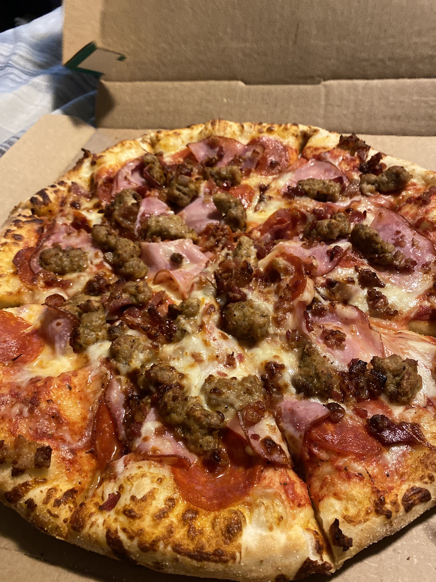 We ordered 3 items on line. Delivery driver showed up an hour later with an empty bag and said they messed up the order and he just wanted to come by and let me know and he would be back with my order. 45 minutes later, I see where the store call my cell phone (leaving no message), so I called them and they said they wanted to be sure we did not get our order, to which I said no, we are still waiting. They said they could not locate our pizzas and were making them again. 30 minutes later they show up with 2 of the items and not the 3rd item. I called the store and asked for a manager and was hung up on. I called back and asked again for the manager told them not to hang up on me again. The manager apologized and gave me a credit for 1 of the pizzas and the item I did not receive. 5 days later, I order 2 items and got the credit applied. The girl who took my order wanted to know if no contact delivery in the garage was still valid and I said yes. The driver shows up and promptly comes to the front door and sits the pizza in front of the storm door on the porch, rings the doorbell and leaves. Had to force the door open because the pizza was blocking the door. Service is below mediocre and pizza is not the best. I don't plan on ordering from them again anytime...