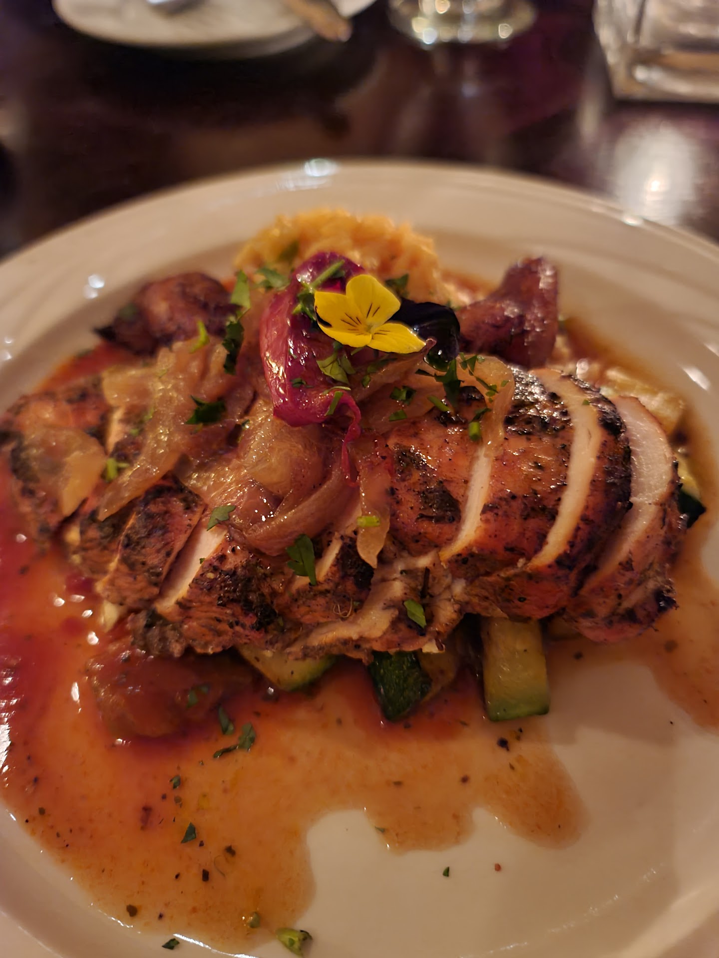 While this place came highly recommended by our hotel, we can’t quite understand why. Hoping it was an off night, but we were disappointed from start to finish. It was the last meal of our honeymoon which made it even more disappointing. First, the host was short and rude, after telling a walk in family they could have a table but would be unlikely to be served… which was weird. We got seated fairly quickly as we had a reservation then waiting over 30 minutes for a server to even get water. We sat down at 7:26, got drinks at 8:05, and not a single other thing until 8:35. We aren’t complainers, but when asked the server laughed as she told us they gave our appetizer to another table and they were making a new one. 2 tables next to us who sat long after us already had tucked into food. Then 10 mins later all of our food, apps and mains arrived all at once, leaving us confused and feeling very rushed. We tried to enjoy but when we asked for water and another drink, nothing came. The table Next to us had similar issues, so the vibe was really just depressing and sad, which essentially ruined our night. We got one apology from the waitress as she laughed at our disappointment and did nothing to make it right. The whole experience was really just terrible from start to finish. The food was mostly cold, and honestly so subpar we were stunned. I understand being understaffed but the lack of service and any kind of help with issues was beyond upsetting. As we left the woman to our right was on her 8th ask for more water, to the point we made a comment to the server on our way out as we felt so badly for her. I wouldn’t recommend this restaurant to anyone, despite the menu being so promising and us so looking forward to this. I never leave bad reviews but I am struggling to even comprehend how it all went so...