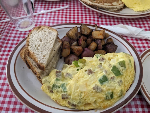 It took 35 minutes to get served.My home fries tasted old and my eggs were runny, the girls enjoyed niether their pancakes or their french toast, but liked the hot cocoa.