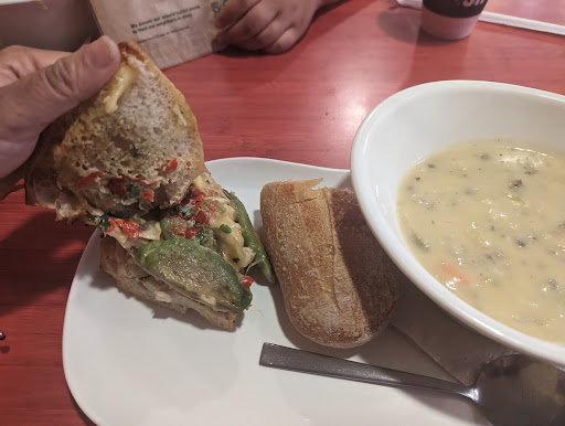 Read moreUnfortunately, it was not a positive experience! I placed an order at 3:15 to be picked up at 5:30... When I got there to pick up my order- I noticed "Sorry" written on my receipt! So, after having to stand in line to find out what was going on with my order... I was told that there was no bread available for the bread bowl soup I had ordered... & I said -"ok but you still charged me the same price for the bread bowl soup that I am not getting." She said -"Well yeah we put an 'extra' to make up for that." It was a bag of chips!! So I had ordered a sour dough bread bowl onion soup & a regular bowl of onion soup- no bread bowl. So, I was given the SMALLER amount of soup that is usually given with the bread bowl... & I received the bowl of soup - the bread bowl that is the usual... I would've had no problem if I'd received the normal bowl of soup - the bread bowl... Or even if I had NOT been charged for the soup in the bread bowl. Instead I was still charged, & a bag of chips was thrown in to "make up for it". Now they had two hours & fifteen minutes to call & tell me there was a problem with my order & how to rectify the problem... Instead I gotta "sorry" written on my receipt!! Disappointing! Especially after I bragged about Panera to my mother-in-law, & that was her first & only experience! I called & asked for the manager...she was very polite & understanding & apologetic :) However, I will not order...