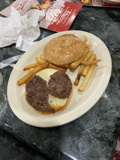 Comically bad dining experience. Sunday evening, not busy. I arrived 10 minutes ahead of my party of 10 (adults w/children) so that I could order some apps that would hopefully be coming out of the kitchen when the kids got there. Fail #1. No one even came over to greet me until the entire party arrived 10 minutes later. When the server did greet us, she walked over and stared at us; didn't welcome us or ask us if we'd like appetizers...just stared and waited for us to speak. We painfully ordered drinks and later entrees. My daughter got the burger (pictured) and she lifted the bun to put ketchup on it and said "daddy, what the heck?". I immediately asked the server what gives with the huge chunk of meat missing. Server said that the chef had to make sure it was cooked correctly. I asked if that process entailed eating it since clearly a large piece of the burger was missing and comically server said yes!! Fail #2. I asked if I would get 1/3 off the price since the burger was 1/3 less and only then did she arrogantly ask if my kid would like another. Fail #3. My daughter was hungry at the time so I left it up to her and she decided to just eat it because what kid on Earth wants to wait for anything? Server never offered a discount or an apology. Manager never visited the table. We also ordered an extra pizza (for a sick kid at home) that never arrived but they still tried to charge us for it. I had to ask for it to be removed and the server questioned me that it never arrived. Comically bad since that's her job to know. Fail #4.