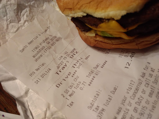 Read moreLess than impressed⌠my husband and I really enjoy sonic and we havenât been in a while so we decided to stop in while we ran errands before I had to go to work in the evening. We waited 10 mins after pressing the call button before I called inside and asked if they were open. They picked up sounding annoyed that someone called in the first place and sounded even more annoyed that I had said we were sitting in a stall waiting to order. They sent someone out to take our order and after about 20 minutes after our order is taken we are still waiting for our food, no communication made by the staff or explication on why a sandwich, hotdog and two drinks were taking so long. I get out of my car to ask whatâs taking so long and see the employees playing on their phones and sipping on drinks while leaning up against the wall by no means looking like they were working or trying to get orders made. They claimed to be understaffed but they by no means even looked like they were trying to work. Horrible service.it took 45 minutes of waiting, 2 phone calls, and walking into the kitchen for our food to finally make it to us and when I opened my order it was wrong. Im beyond upset at this point and tell them I donât even want it any more and would just like a refund, the girl grabbed the manager on duty who proceeded to try to tell me what I ordered came the way it had been made to which I responded that the menu said bacon or sausage and I had only wanted bacon and the sandwich I had been given also had lettuce and tomato and it was not supposed to. She offered to remake the sandwich herself and we finally received our order. All I received aside from that was an apology and a flimsy excuse of being understaffed when I saw 5 employees in the kitchen and there were no more than 3 cars there at a time. Disappointing is to nice a word for the experience...