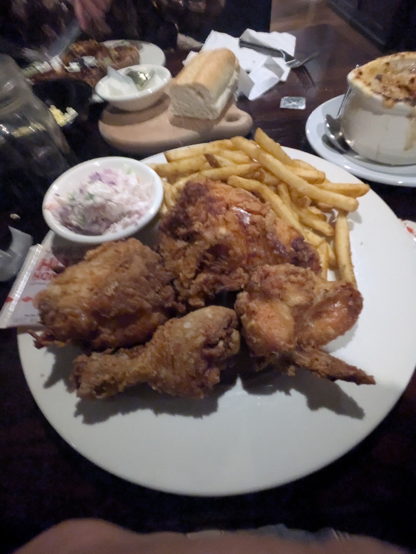 We had dinner here on a Friday evening at 7:30 p.m., opting for the patio since we had our dog with us. The waitlist system worked well; we received our notification text and were seated right when we arrived. Our initial drink and appetizer orders arrived quickly. However, the experience went downhill from there. The saganaki was delivered by a food runner who dropped the food and ran off before we could discover we had no plates. We resorted to eating on our napkins. Only four small pita triangles accompanied it. Our server did not return until the appetizer was half gone, at which point I asked for plates and more pita bread. Rather than addressing this immediately, she entered the building and returned later with the plates, assuring us the bread would follow shortly—but we had finished by then. We ordered the entrees, including a plain chicken breast for our dog. Our meals arrived, but the dog’s chicken did not. When the server checked on us, we asked about it and she said it had been mistakenly delivered to a neighboring table who also had a dog but a new one was on its way. At this time, I asked for water. The server ran off again only to return later with a tray of water filled glasses for her tables, inquiring if I wanted one as if I never asked. The replacement chicken eventually arrived via another runner. My husband's dish was good, but mine was severely overcooked: the bun was tough and leathery, the chicken dry and tough, and the fries dry. It was inedible. As I struggled with it, I attempted to signal the server. I needed a fresh napkin, condiments (none were provided on the table), and we wanted another round of drinks. And as minutes went by, I decided I needed to ask for a replacement entree. But despite repeated efforts—scanning the area, attempting to make eye contact with her, and gesturing with a hand high in the air—our server remained focused solely on her immediate tasks, literally running between tables then running into the building without glancing around. Bottom line, there was inadequate staffing: she was the only server on the patio, with no additional servers, bussers, or hostesses present throughout our entire visit. When presenting the check, we voiced our dissatisfaction with my entree; she whisked off with the bill and came back and said management gave us a 50% discount on it. My bad we should have gotten up and gone into the building to ask for help or asked for the manager but we had driven eight hours that day and we were tired. We accepted the discount and left. To management: If patio service is offered, it must be properly staffed. Overcooked food is an occasional mishap, but leaving patrons unattended is unacceptable. Beyond service lapses, this raises safety concerns—potential accidents, medical emergencies, or disputes could arise, for which the establishment bears responsibility. Ensure at least one staff member is present on the patio at...