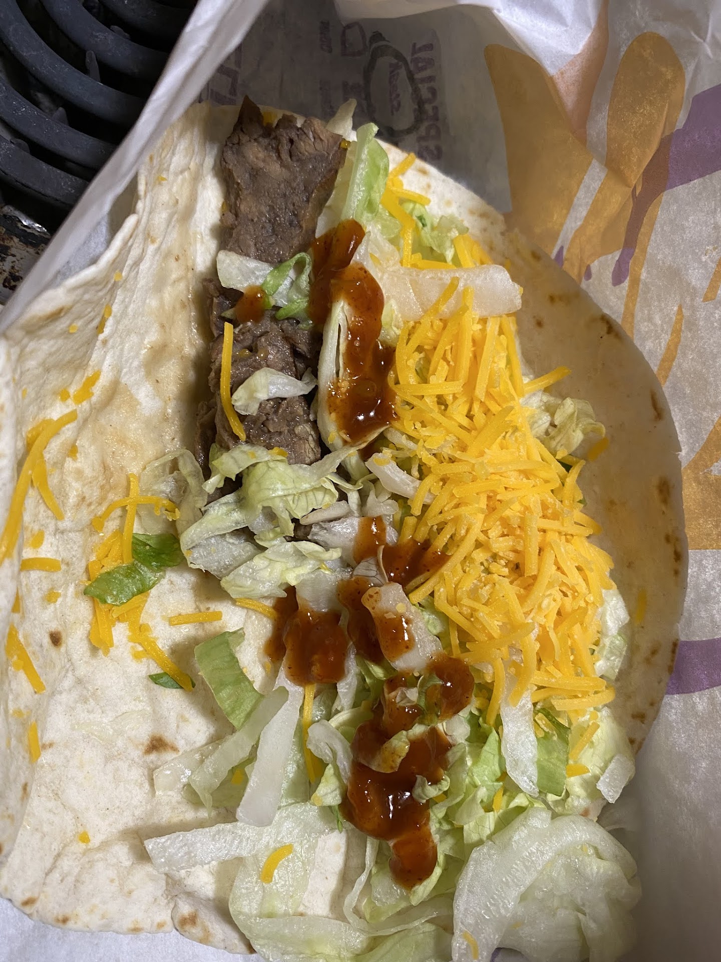 I forgave it, whatever. Visit again, two or so days ago. For breakfast. Spent 15-20 min on hold in the drive thru. And when I got my bacon crunchwrap, every.single.ingredient was in a different section/pile of the wrap.