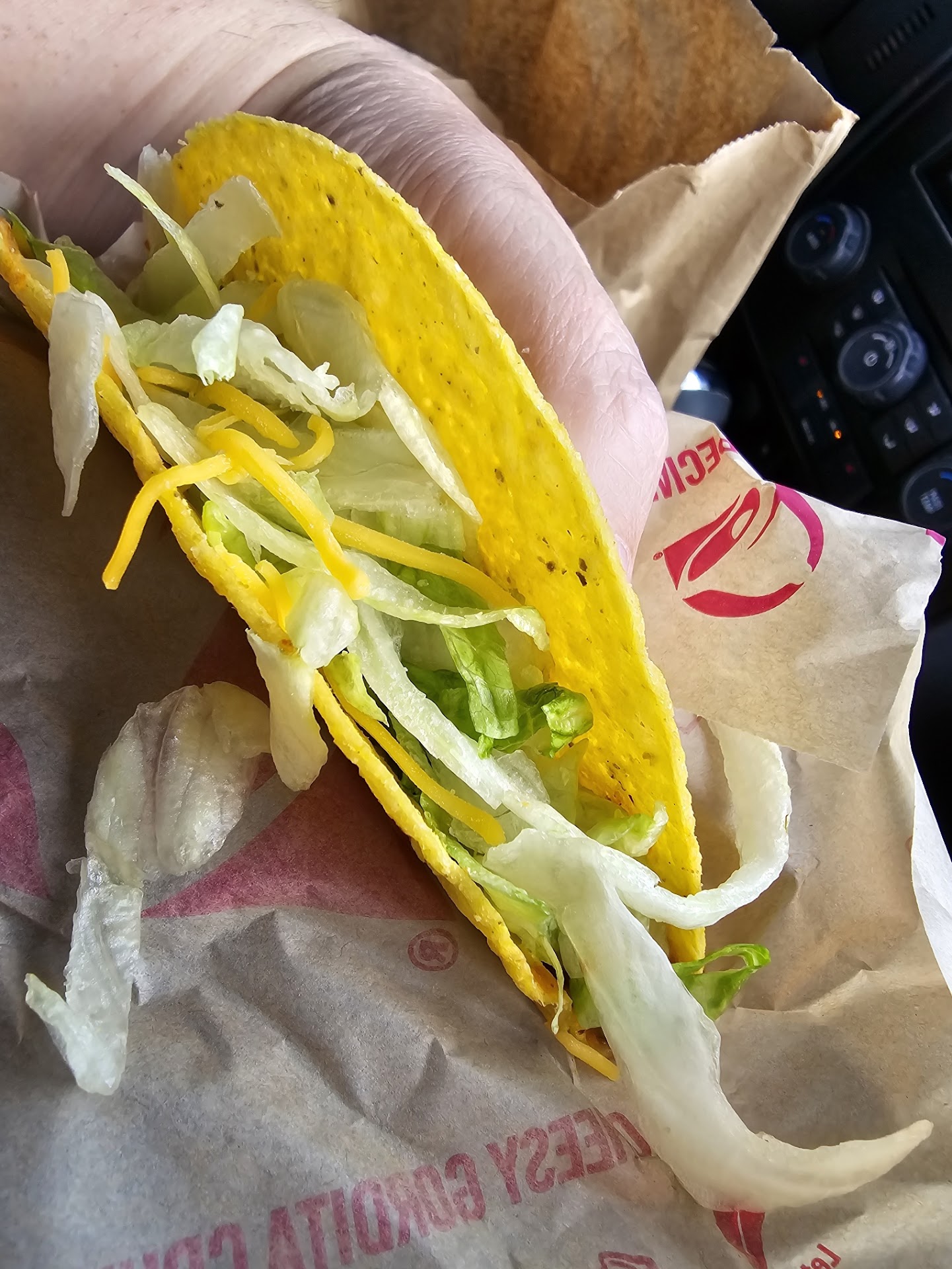Attached a picture of a sample of the tacos I got. $10.99 for 3 of these and what felt like a splash of rootbeer with my ice (when I requested one drink with light ice, and one with no ice). These tacos had barely any meat, barely any lettuce, and it looks like someone threw the cheese across the room and whatever few pieces landed on my Taco I got to keep. Also, the taco in the picture was the BEST ONE.