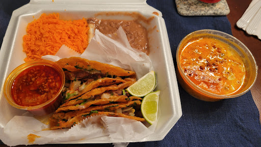 Read moreLucky I had to meet up with others in the parking lot - allowed me to stumble on and try this amazing hidden gem. Wife and I tried various tacos and both orders were amazing. ToGo order was prepped quickly and with everything we needed (condiments, napkins, utensils, etc.). Queso was decent and the salsa was nice and smoky. Bottled beer available for purchase while dining in. Pricing was a little higher than I would have thought, but some dang good grub. Will recommend to others and stop by again...