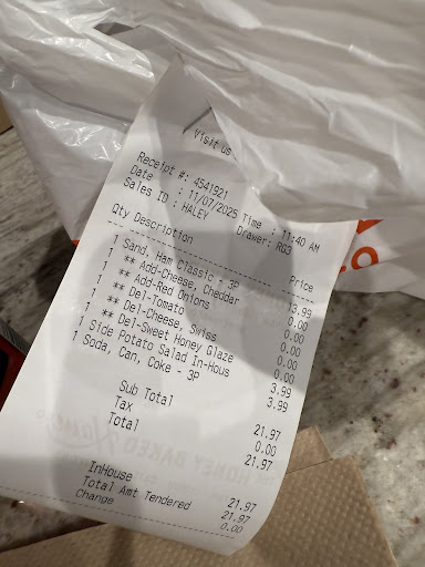 Read moreI went to this location last week and the staff have nasty attitudes. I ordered ham classic sandwich, a chicken salad sandwich, and chips. The ham was brown, old, smelled spoiled, and the tuna wasn’t put on grain bread. I also told them that their jalapeño chips in the basket were expired and they didn’t even take them out of the basket. They are selling old spoiled meat, and expired potato chips to customers which is unacceptable! When I asked for my money back the dark skinned girl with the nappy ponytail got an attitude with me. This is the worse honey baked ham location that, I’ve ever been...