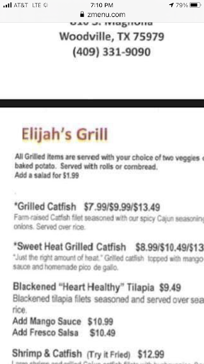 Read moreI used to love Elijah's, but after last night's experience I have changed my review to 1 star it would be zero. My baked potato was served to me ice cold, the chicken I got was too hard the first time so I sent it back when I got a new one the chicken was not done. My grandson was also on the outing and he did not get his food until the rest of us were almost done with ours. To add to the problem every time we wanted to ask a question our waitress was nowhere to be found. We had 5 adults andc4 children in our party spent well over 100 dollars and could've gone elsewhere, but we chose because we loved it. Now I won't be back for a while if ever and I plan to tell everyone I know that a restaurant I once recommended to people is not good anymore. You can go there if you want to get Salmonella food poisoning from undone chicken, but I won't. Thanks for a bad night Elijah's. Best Thing I ate thereafter night is the peppermint you give for...