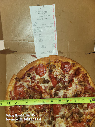 Read moreI ordered 2 large pan pizzas. Meat lovers. And a brownie triple chocolate. They gave me two medium 11inch pizzas, which I didnt notice until i got home, And a cookie instead of brownie, which she told me about before I left. Said they accidentally made cookie. All in charged me 65 dollars. They've never done this before. The pizza was good, but for that price you should get what you order. The two little pizzas wouldn't even feed everyone. Now we gotta find something else to eat. Their pizzas used to be alot better. Guess we have to find a new pizza place. Probably just be better off getting pizza from Walmart now if they're gonna be like that. I hope they don't treat all their...