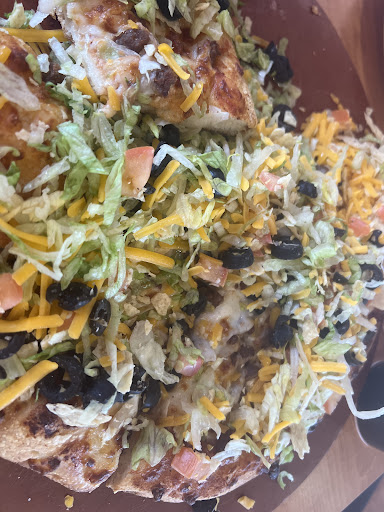 Medium original crust pizza reminded me of typical food court pizza... thick & doughy and 3+ inches of dry topping less crust that we whittled apart with a butter knife.Kitchen must have been rationing toppings and cheese that evening. If you order beef/cheese nachos, you might get a gob of who knows what served with invisible salsa. Cinnamon sticks were served piping hot, tough as a boot, served with Mazzio's famous invisible dipping icing.The cook might have gotten thrifty and recycled from the lunch buffet leftovers. We were told to order at the counter, then told to have a seat by another worker. Got menu's,drinks and ghosted by our waitress. Eventually we were taken care of by a young man who was very attentive. $38 worth...