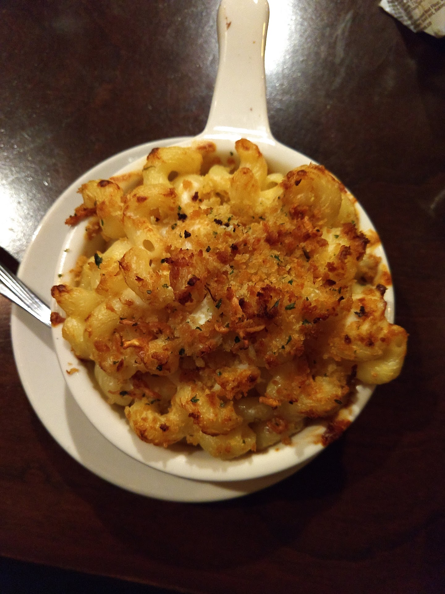My wife had the $18 lobster and crab mac and cheese. It arrived in the same size bowl as my son's kids meal mac and cheese. It was extremely small for an $18 appetizer. The cavatopi pasta on top was dry almost burnt with next to no cheese in the top two inches of the pasta. My wife eventually found the cheese and seafood buried at the bottom of the bowl. Once mixed it still wasn't good. Actually it was horrible. My son's $9 kids Mac and cheese with $2 bacon bits added to it was delicious and flavorful! All they had to do was add the seafood to that dish and it would have been good. I honestly can't say anything good about it. If you love lobster Mac and cheese go to Carney's in Cape May and try theirs. It's easily double the size, a few dollars cheaper, and amazingly delicious!