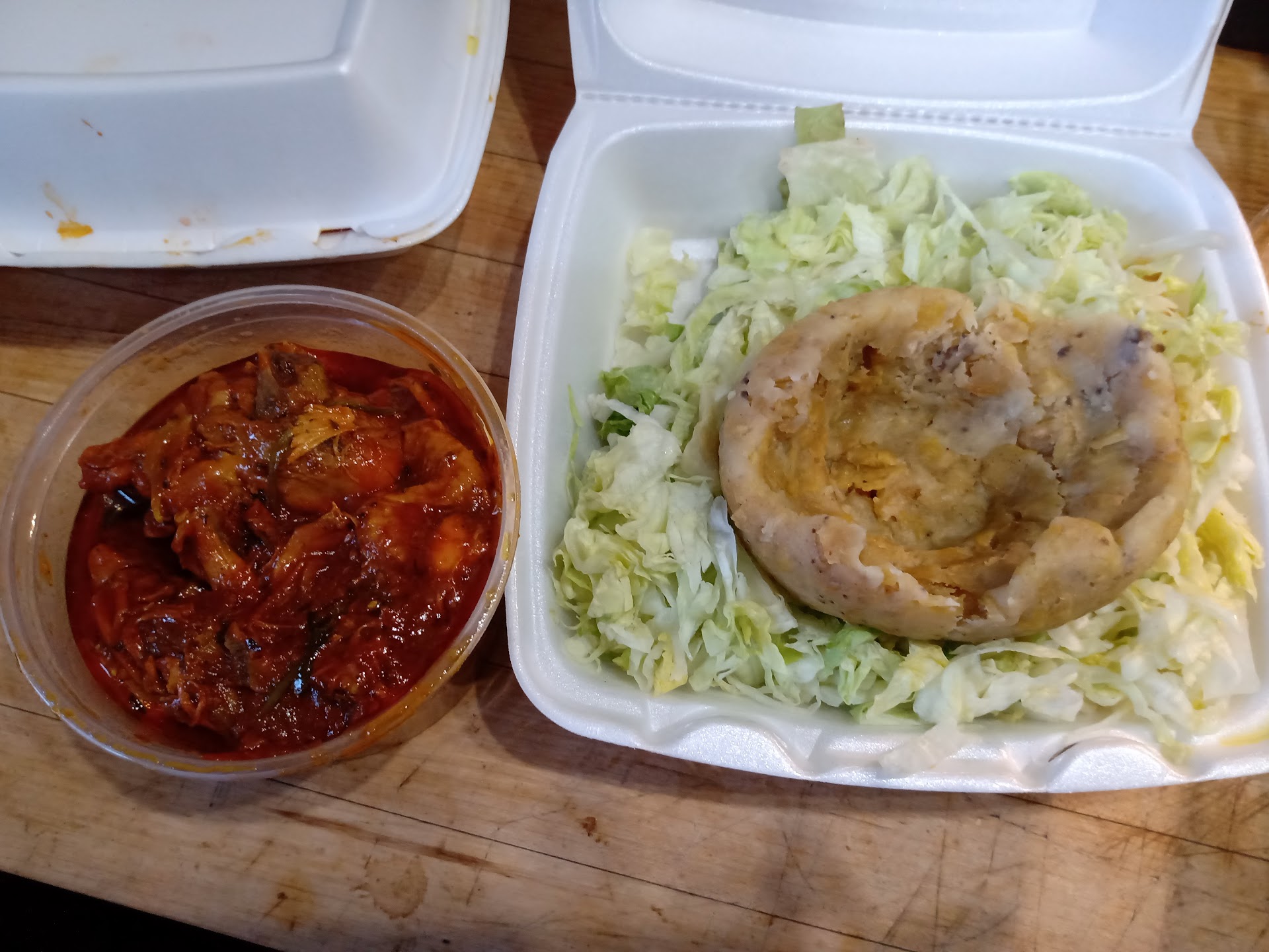 It was my first time going to this establishment. The store had everything I could ever want in a tropical market/meat market. The food was delicious. I went there for the mofongo. I got the shrimp and stewed chicken one's. I also grabbed the stewed pork shoulder with the skin along with the stewed chicken gizzards. Yes I have a problem. I can't get enough ethnic food. The female staff was very friendly and helpful. Yes the fellas was nice also. Haha 😎. Yes I will continue to fox with them. They do deliver. Will test that out next time. Treat your shelf and don't cheat yourself. Oh yeah they have desserts also. I'm about to go into a food coma. Things have changed since my first visit but I understand with the high cost of food. The scale was in full affect. I will still...