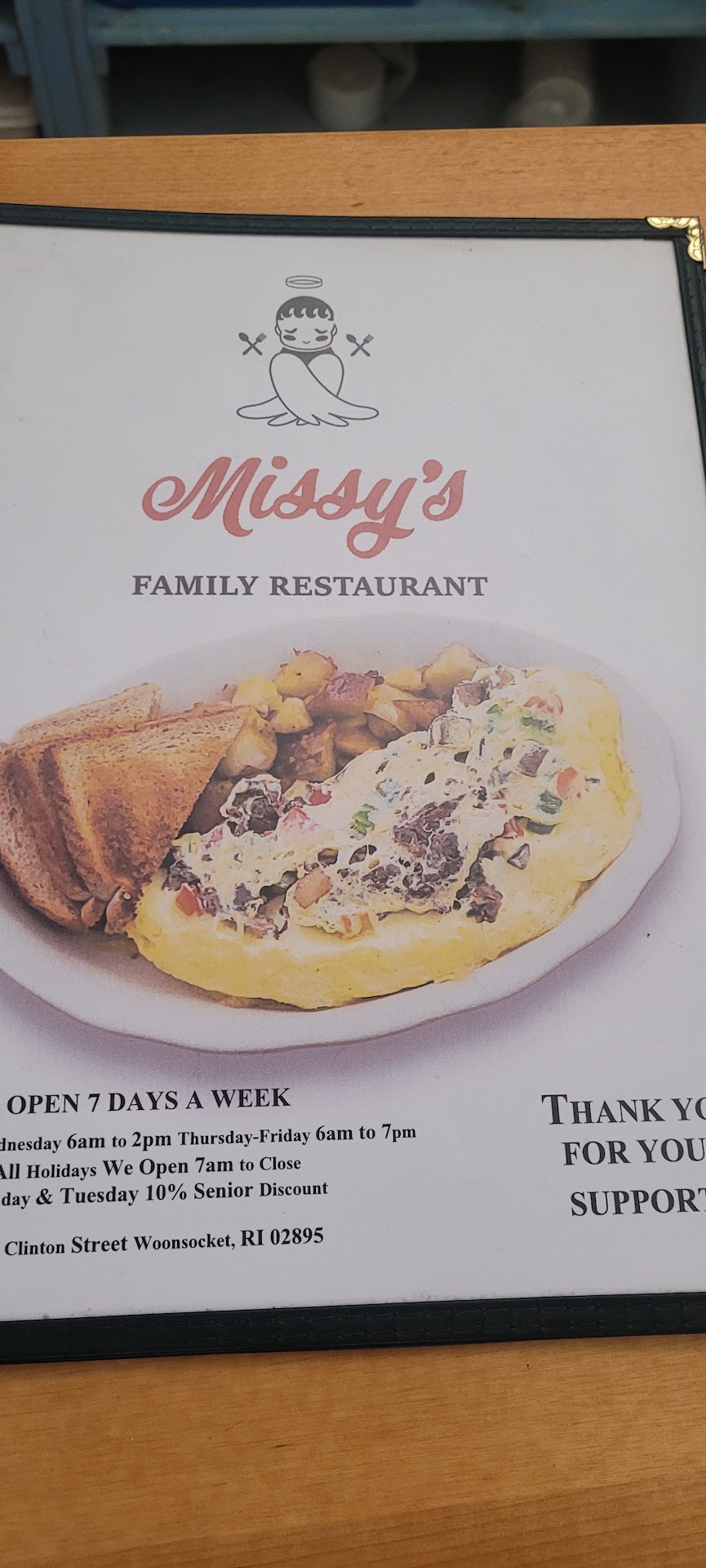 Read more2 Wks ago my wife & I went into Missy's Fam Rest. We've been back 4 X's including WITH the family. Our first impression of both the service & food was Excellent. We were treated & felt as comfortable as if we were regulars for years! Unique in a wonderful way, I've ordered the Texas stuffed french toast (INCREDIBLE 😃!) .. the Eggs Benedict, (INCREDIBLE 😃!) .. OMELETTE, INCREDIBLE 😃! This is our new morning routine. 2 think I never stopped before?! DEFINITELY A MUST TRY!!!! DBL check the hrs & remember it's harder w/ Covid-19, but definitely make it a " must check out" ESPECIALLY if u love fresh haddock & clam chowder 😉 ... Rumor is dinner is ALSO WONDERFUL. If u can't do breakfast, they do lunch & dinner!!! Pictures Coming soon!! Love Missy's Fam...
