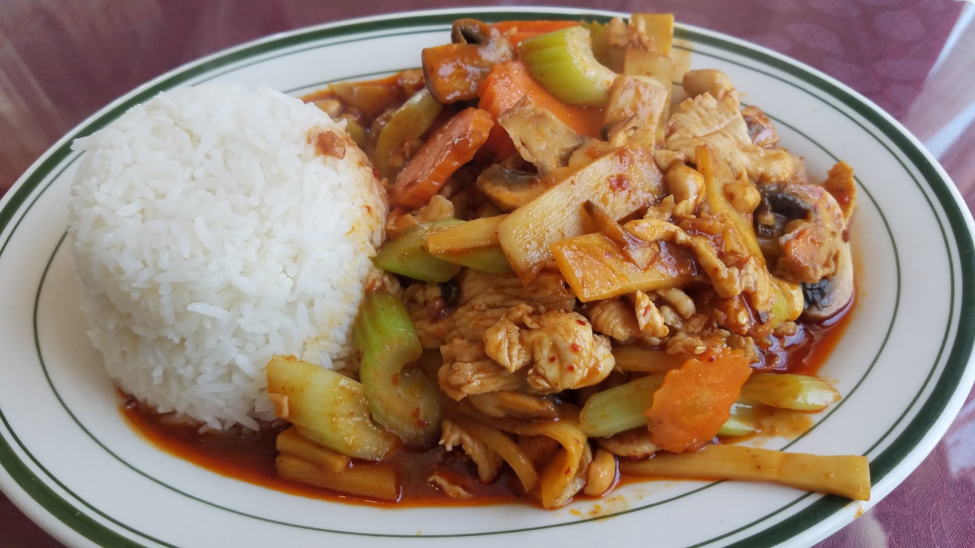 Read moreReally good! This is my second time here, almost across the street from Stadium Theater, where we had tickets to a show. So very convenient if you are seeing a show across the street! My friend can't eat peppers and mushrooms, and we asked if they could do the Hot Basil dish with other vegetables. So they did, and it was delicious! Happy that they were so accommodating. Very reasonable "house" glasses of wine, too, at $4. Good fresh spring rolls as well. I will be coming back, whether I have tickets to...