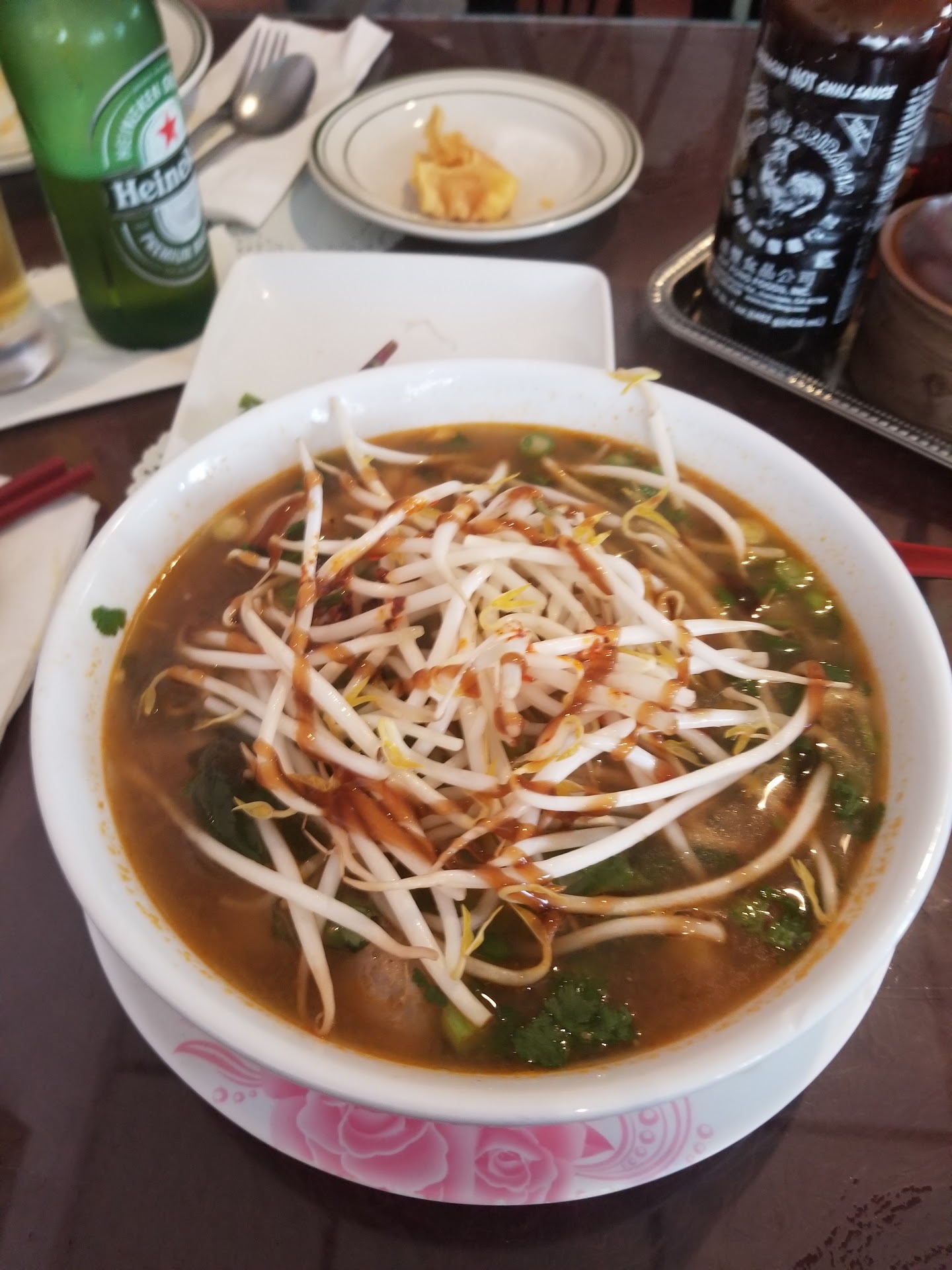 The first time there got there placed was packed. Waited for a table, which was awkward since the place is so small. Once seated got the menu for myself, my husband chose to get the buffet. He went up to get a plate, then a second plate. I still hadn't be asked what I was ordering. By now we're 30 minutes in the restaurant. I finally place my order seafood Pho. She walked off again before we could order drinks. Waited another 20 minutes for my Pho. By this time my husband was done eating. He sat there and waited for me to finish eating. I drinks did arrive at the end. So much for a lunch date lol. The seafood pho was outstanding. The buffet was tiny but pretty good he stated. Normal items white rice with veggies, egg rolls, chicken wings, mixed veggies with beef, e.t.c. Total bill for everything $26.46 with tip. My bowl of Pho was $11 but I swear so...