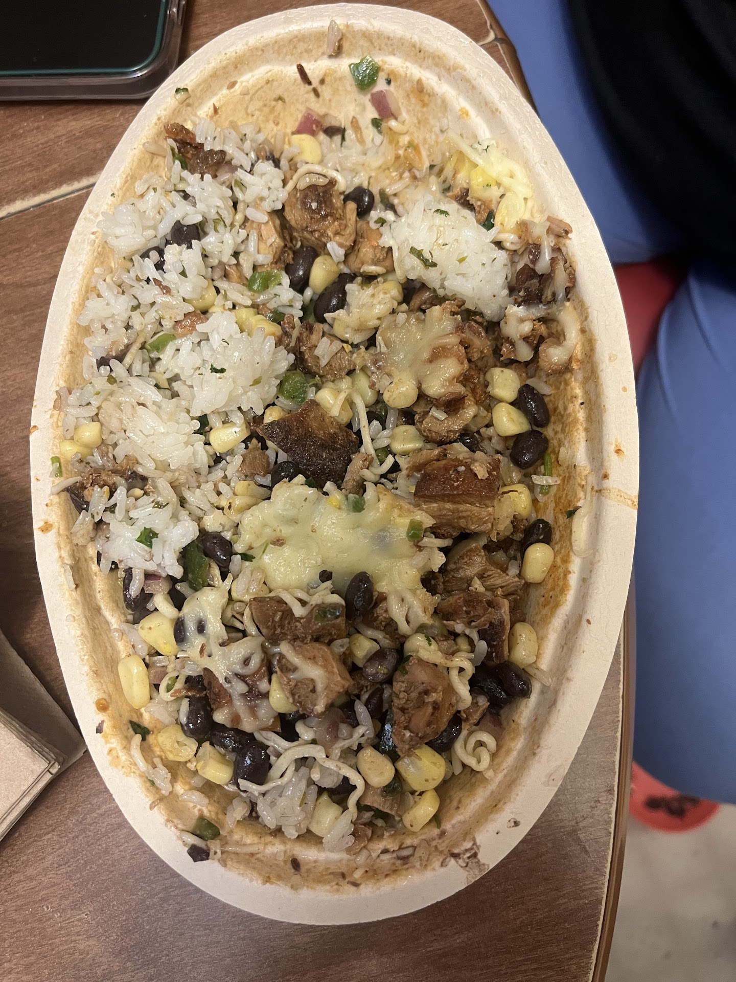 Read moreSeriously this is the first experience in a while for me to have had as less as a portion especially at the end of a shift, enclosing of the day of business, I've not had a Chipotle experience that wasn't worth It. Having completely consumed my portion, I have never had a Chipotle serving. That was so shy, but because of my having not nourished anything for the entire day, I didn't even take the moment to take a photo to show the most. I had in my bowl out of all the ingredients was sour cream. There was no cilantro, there was no avocado for guacamole. I barely have rice. What's gonna skip over the veggies? And gave me a very minimal portion of meat, just as minimal as the match of the amount of rice that did not cover the base of the bowl. These type of things with young people Really disturb me because I know from experience.That is situational. 2 stars is really all this experience. Warranted, but I'm being courteous with the additional star. Since s my good friend was the one who made the purchase on my behalf had it been left up to me, we would have...