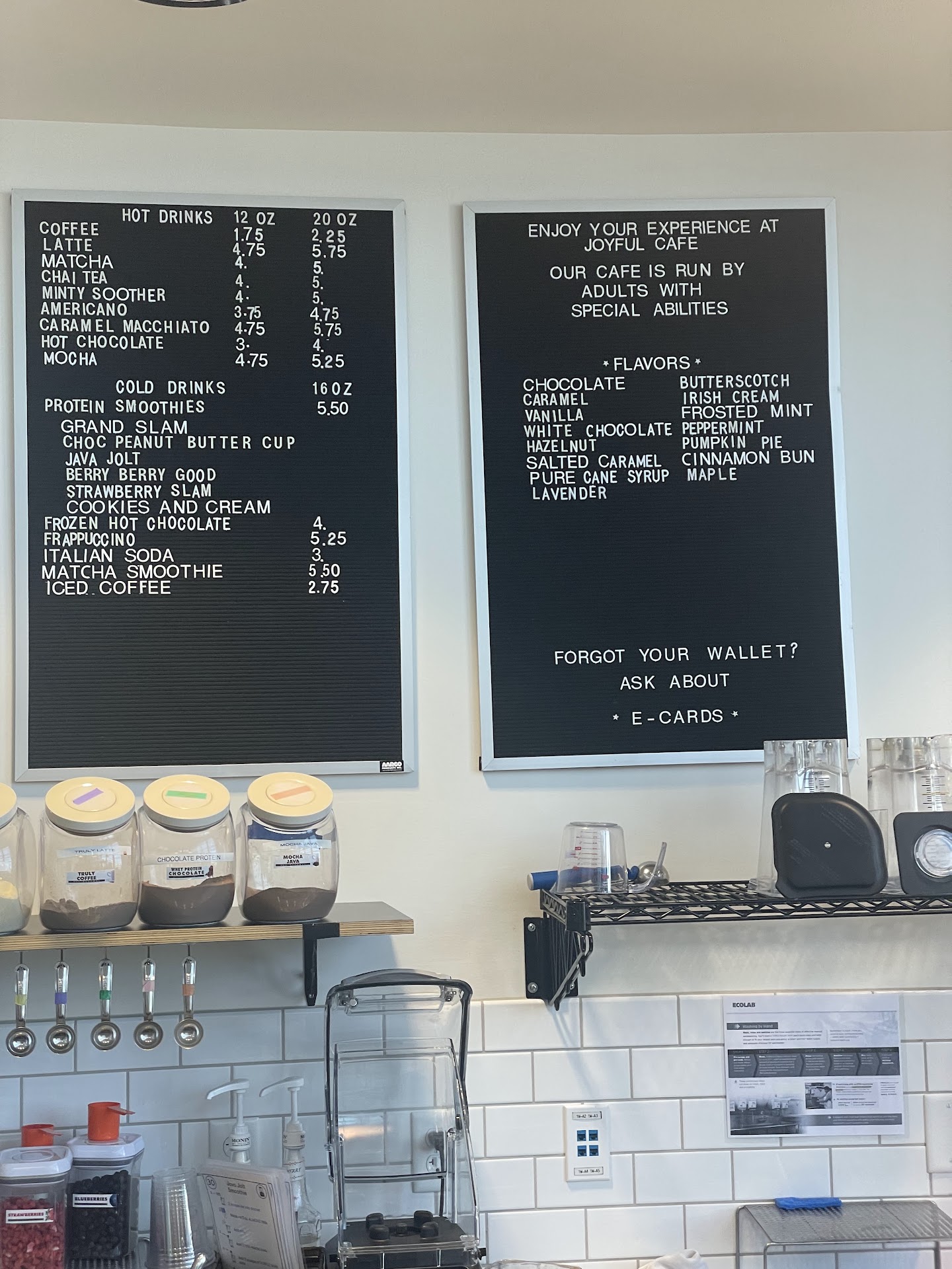 Read moreI made my first visit to Joyful Cafe today, and I don't regret it. The service was amazing, and it felt like a community from the moment I walked in, ordered, and received my order. I also appreciate Joyful Cafe's efforts to provide job opportunities for adults with special needs. As someone with Autism, ADD, and ADHD, I fully support creating more job opportunities for adults with special needs, enabling them to feel included and welcomed in the community. I plan to visit again in the...