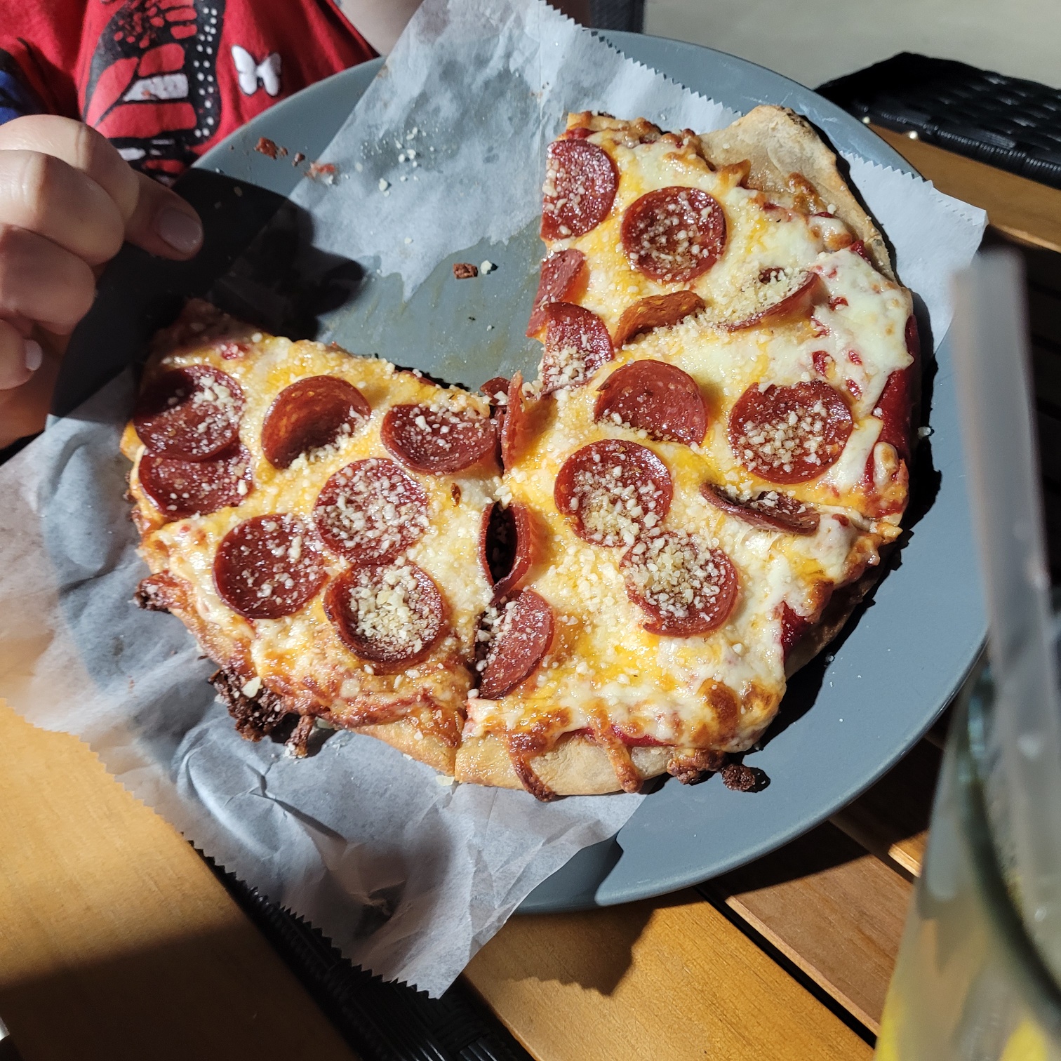 My husband and I stopped by here last night for dinner at 9:30. We decided to sit on the patio since it was a nice night. This place has such a cool, relaxed vibe with plenty of seating. We both had pizza, and it was some of the best I've had! They have a sourdough crust and the sauce is robust and not to sweet. There were plenty of toppings and cheese! Our waiter was very friendly and made sure we were taken care of throughout our visit. He let us know their menu changes every few months... even though we are a couple hours drive, we will be making a return visit without any doubt. The menu I'm posting is new and should be accurate for the...