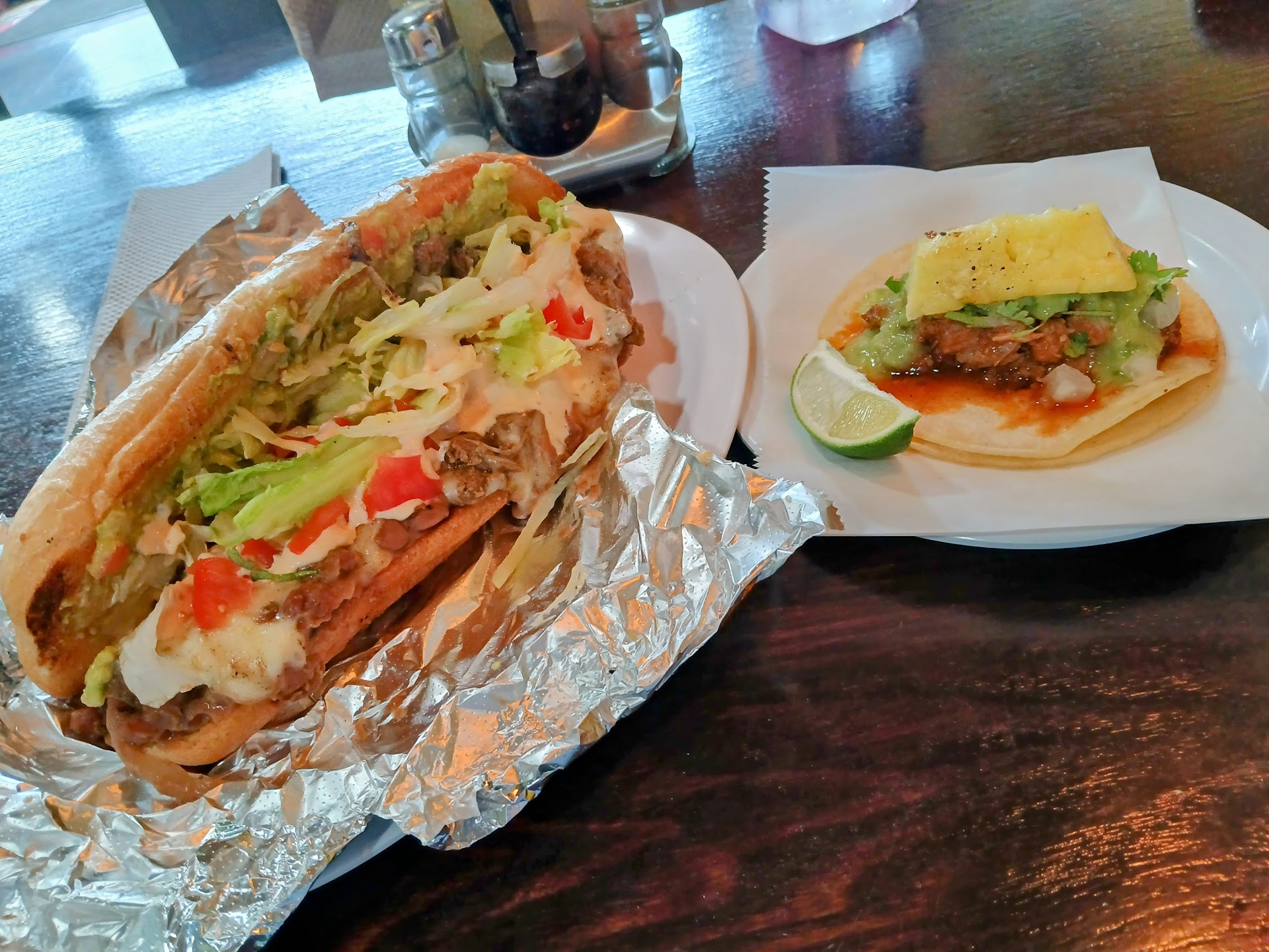 Decided to try out a new taco place for lunch today. Ordered a carne asada torta for $12.50. This thing was loaded and super messy. Bread was nicely toasted. The meat itself was decent and it was loaded with beans, lettuce tomato, onion, cheese and a delicious Chipotle mayo. The Al Patsor taco was my favorite though. Tender flavorful pork in sauce served on a couple of fresh hot corn tortillas, and the fresh juicy pineapple spear on top really brought it all together. They also had a perfectly spicy hot sauce on the side. The couple that runs the place are very polite and accommodating as well, and the food was served quickly after ordering. I will definitely be back to try the other taco varieties and burritos. They also serve...