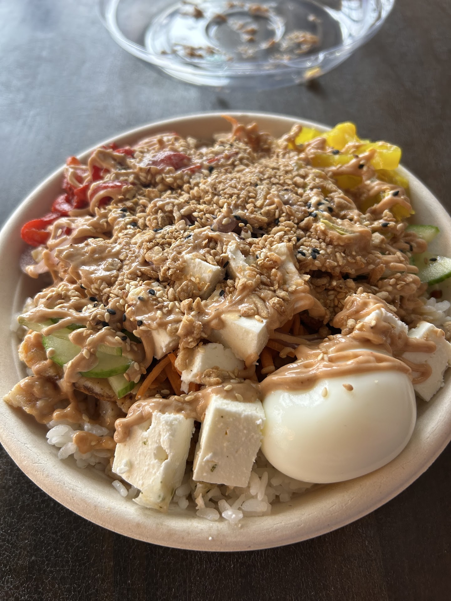 Read moreThis place is inside the Worcester Public Market (WPM). They were giving out samples of their food so I thought I’d order since the sample was delicious. I ordered the make your own bowl for $14 and you choose your base of rice or couscous or a mixture or some greens. I went with rice. Then your meat which I opted for the only non-fish option, chicken (I don’t like fish). They then ask which soy sauce you want and I said I wasn’t sure so she suggested the garlic soy. Then I loaded it up with roasted red peppers, banana peppers, onions, cucumbers, carrots, and added feta and an egg (those two were extra cost I believe). I had the siracha mayo or something like that on top with sesame seeds and crunchy garlic for a crunch on top. It was filling and delicious! I think it’s my new fav food spot...