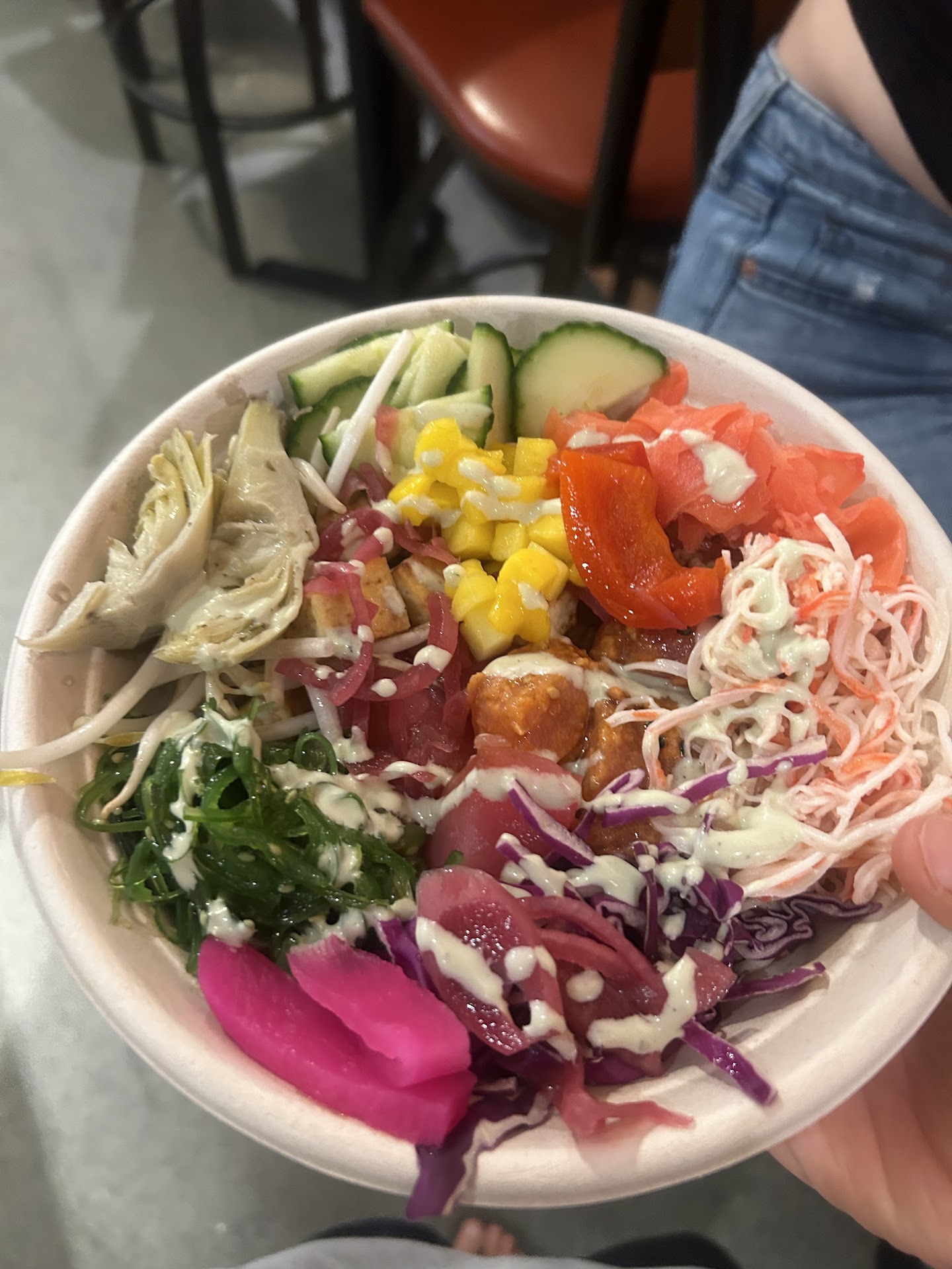 Read morea GEM at the very edge of the public market. i heard there was poke so i was determined to hunt it down, and boy, was i glad i did! everything was pretty standard as far as poke toppings go- i think the one thing you maybe can’t find at other poke shops was the vegan chicken (which they were out of, as the owner explained they had been swamped earlier). i bumped my rating from four to five stars for the whisper of a mediterranean twist, as per the feta, roasted red pepper, and artichoke hearts, but if you know poke, i think there’s some slight range but nothing exuberantly unique. however, the price point ($14 for a byo bowl, which for someone visiting from boston was an INSANE steal) was unbeatable, there was an unlimited topping bar which offered a wide array of pickled veggies, you can’t ever go wrong with seared or spicy tuna, and the aforementioned owner’s service was impeccable. super friendly, super delicious, fantastic price point, and great portion size- it truly was...