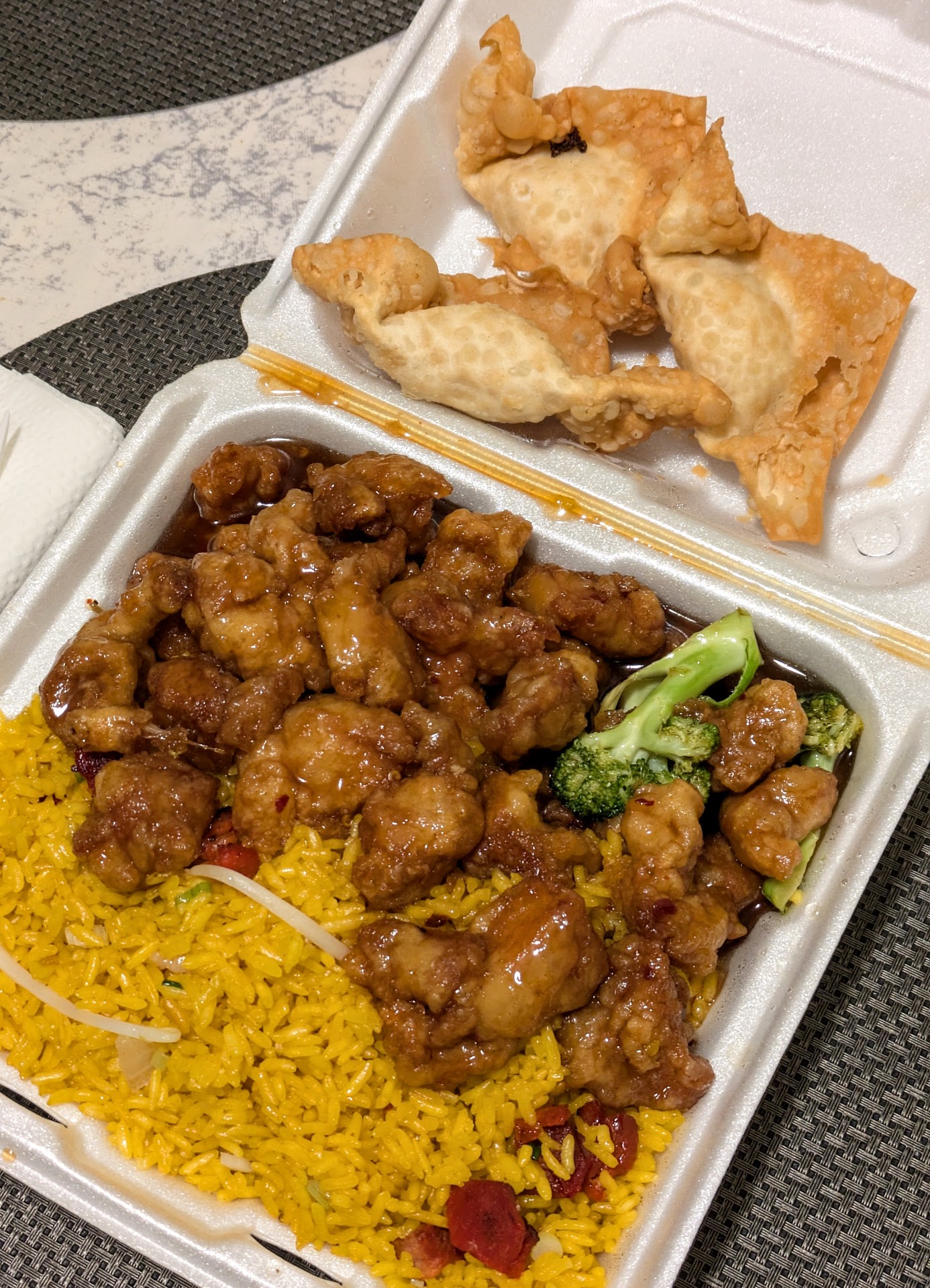 Ordered the A8 chicken finger, boneless spareribs. Crab ragoons with pork fried rice and veggie spring roll and can soda $15.60. Only reason I came here was because I was on this side of town and nostalgia and hunger hit. I used to eat here all the time growing up and remembered the food being so good. I came in started placing my order and waited 24 minutes, 14 minutes passed the 10 minutes they said. But hey I’m getting good food so I’m going to be patient. Get to where I’m going that’s about a 3 minute drive , all excited to finally eat! Boy oh boy was I disappointed! First 4 small pieces of boneless spare ribs , 2 crab Ragoons and a massive and overwhelming amount of chicken fingers. I’m hungry I’m going for it. Chicken fingers looked like they were refried after sitting for a while in old oil, even taking the breading off it’s completely un- edible , I turn to the 4 pieces of ribs hoping it’s atleast edible try to take a bite and it’s so hard it’s like a jerky. I’m starving so I go for the rice something has to be edible. Again my mistake it was no good. I feel like I got old food that was refried to make it look fresh. My childhood memories got tainted with this...