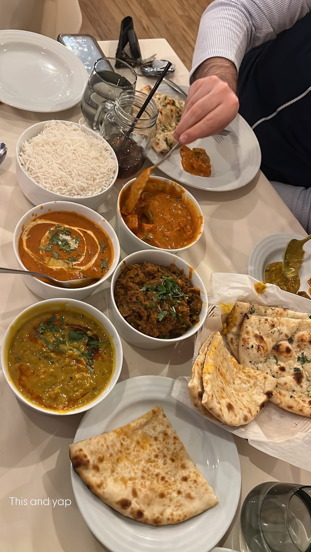 Third, THE FOOD. Between the four of us, we ordered a wide variety of dishes and I'm honestly not sure what the best one was (we ended up all trying each other's!). I chose the pan seared lamb chops, which were tender and juicy. They were perfectly complemented by a creamy red sauce on the side (which was also delicious to dip our naan bread in!). Do NOT skip ordering naan! They have multiple varieties from which to choose - - our group opted for the cheese naan, the garlic naan, and the chili garlic naan. They were all delicious. 12/10 on all of the food.