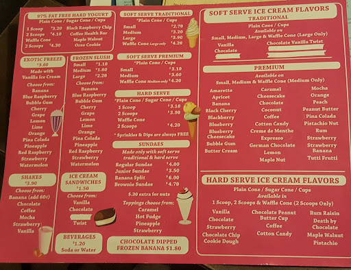 5 star for a classic style ice cream. They have many flavors for soft serve and they owner is just the best. I know him well as a customer and he remembers my other patrons. Sometimes you may wish the ice cream had more flavor, but you can ask for a bit more flavor too. The good thing is that his ice cream is less fatty and sugary than the norm, and he makes it all right there in the machine, by hand, every order. Ordering can take some time because it's such a personable touch, but it's a nice, welcoming, very friendly environment. Try an exotic freeze, it's soft serve and slush together, if you've never had this combo before. This is the first placed I've ever eaten a banana split, since I'm not the biggest fan of bananas; but I seen somebody order it and it looked so delicious I had to get one eventually. Good , family, friendly, awesome soft serve.