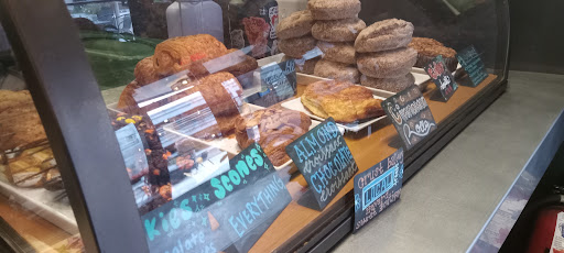 Overall, nice experience. We ordered a chocolate croissant, blueberry cheese danish, and a 'coffee cake muffin'. The pastry on the croissant was flaky and light, though a bit oily. When we asked the girl at the counter what kind of muffins these were, she told us coffee cake, though we're pretty sure it was a pumpkin muffin when we ate it. Mulled cider was great, and a good size for a small! We dined in and the atmosphere was nice, though it is small and there was no sign of a bathroom.