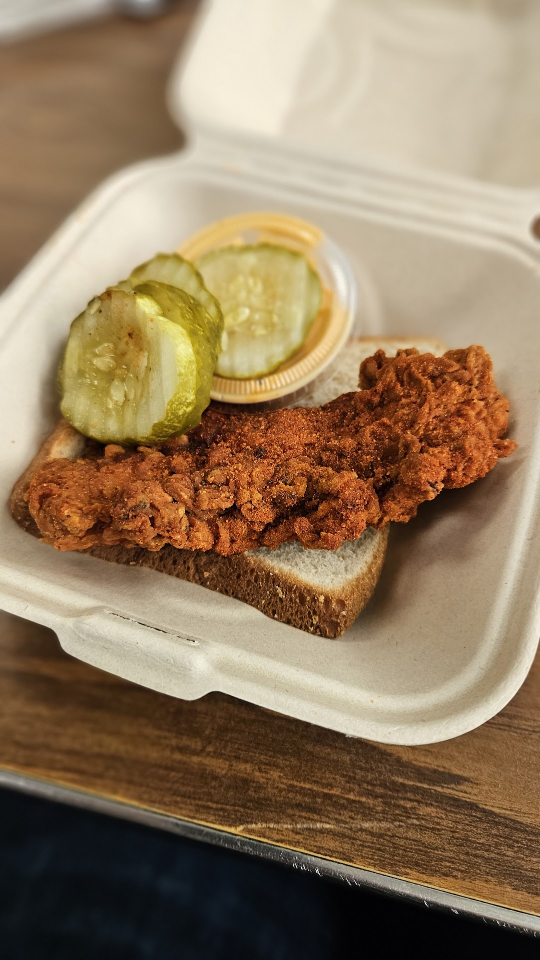 Read moreI’m in search of a new fried chicken place now that BT‘s has left the neighborhood. I stopped in this afternoon to try Dave’s hot chicken. The server asked me what heat level and I let her know this was my first time there and she kindly guided me towards the medium; it was just perfect. The pickles were perfect, the coleslaw was perfect, the sauce was perfect, the heat level was perfect, the chicken and the crunch, and the juiciness were perfect. The bread was very good. And the service I got was excellent. It only took about five minutes for my slider to be ready, the store was very quiet, but still had about 20 people in it on a Monday afternoon. When packing up my order, the server kindly offered helpful tips on which sauce to put on and gave me an extra packet of Dave sauce and pure honey, which I added to the sandwich and it was awesome. I forget the server’s name, but my receipt says I was waited on by Daijon J. She was so friendly and helpful. I really appreciate it. I paid $7.59 for a slider, which is a smallish chicken sandwich. It came to $9 with tip, so I won’t be bringing the whole family as this is a bit pricey. But I do hope to stop by with one of my kids as a...