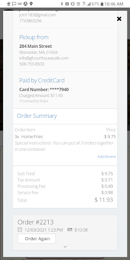 Read moreThe food is really good. I just really hate how they ask you for a tip when ordering online and charge you a processing fee and service fee. It's sneaky because you don't see it until after you pay. A 9.75 order should be 10.36 with tax. My final charge is 11.93. Thats almost 20% in fees. So I leave no tip for that reason. I guess I could have called my order in and paid when I got there and maybe paid 10.36? Either way I figure it's much easier and less hassle for the staff if I do the online order. I just do not see how you justify charging 2 separate additional fees after tax and have the balls to request a tip from me while not informing me im going to have to pay close to 20% in " processing" and "service" fees. Service fee is described as tip basically. So i guess you force me to tip you with your service fee and then request an additional tip on top. Bad business. Its not the money. Its the principal. You should let people know before they take the time to order that the food actually cost about 20% more than stated. Also your overcharging the state legal sales tax. You took 10 cents extra. Every customer that adds up at the end of the year. 6.25% on 9.25 is not 71 cents. Its 61 cents....