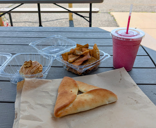Read moreWow just amazing food! The beef and spices triangle breads are so moist and flavorful! And the hibiscus frozen tea was perfect and refreshing. But omg, the zatar chips, these might be my new favorite chips! So amazing and yummy! Everything is freshly made and the service was wonderful. The lovely woman at the counter advised that I get the walnut baklava as it was still warm from the oven and it was incredible! I cannot wait...