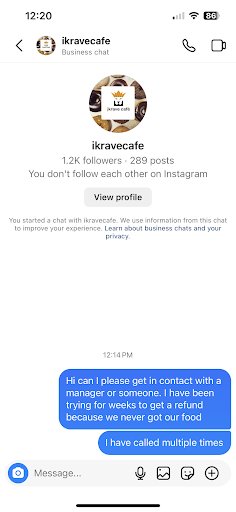 I tried to call and speak with someone at the cafe but no one answered the phone and the voicemail was full.