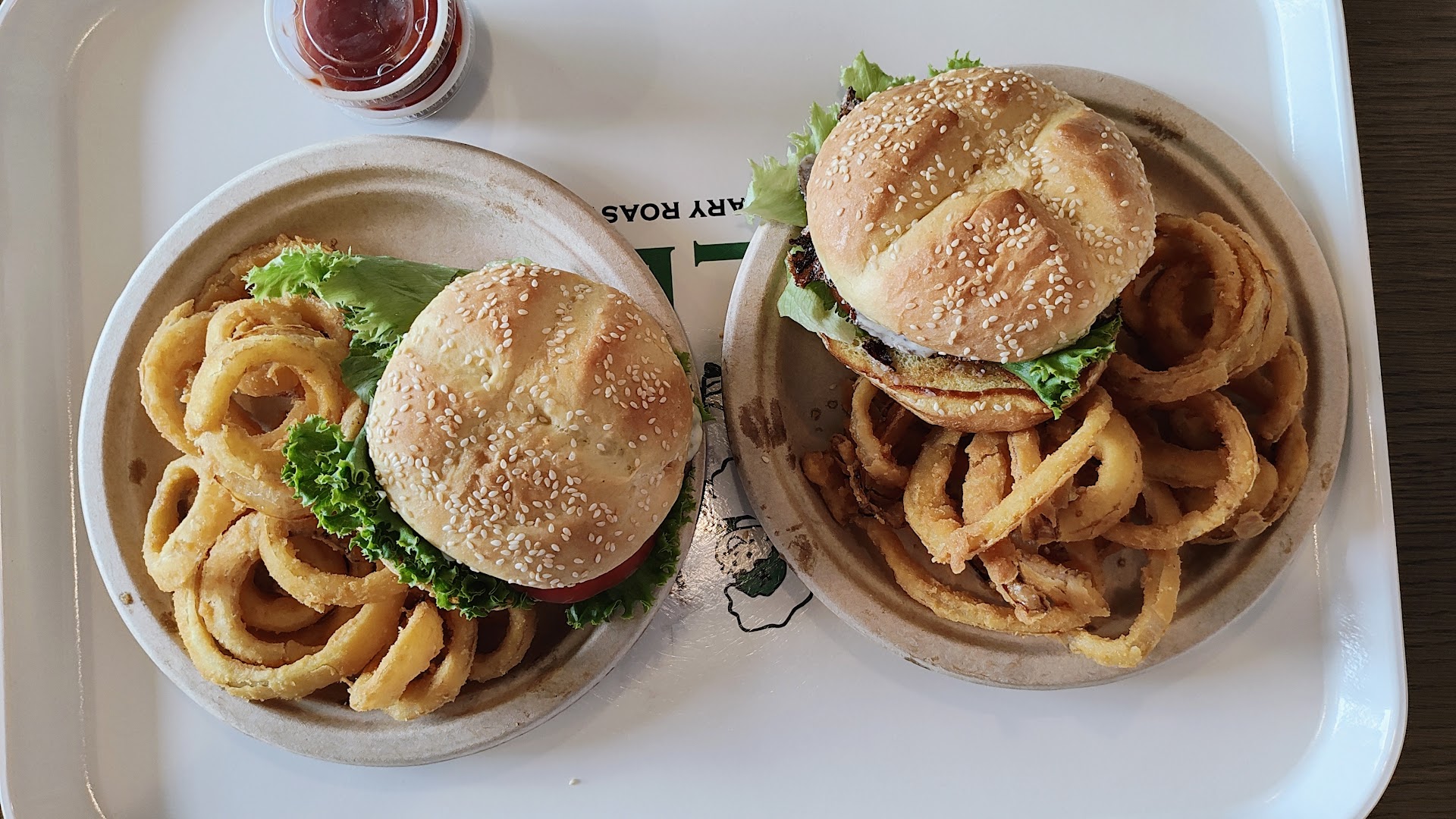 With the items I was more critical of about my experience out of the way, the food was excellent. I ordered the Roast Beef Sandwich with Au Jus and a Caesar Salad Half. We also ordered a Large Onion Ring. They included several sides of Au Jus, Caesar Salad Dressing, and Ketchup packets. I was very impressed that they didn't leave us wanting for our Au Jus and salad dressing.