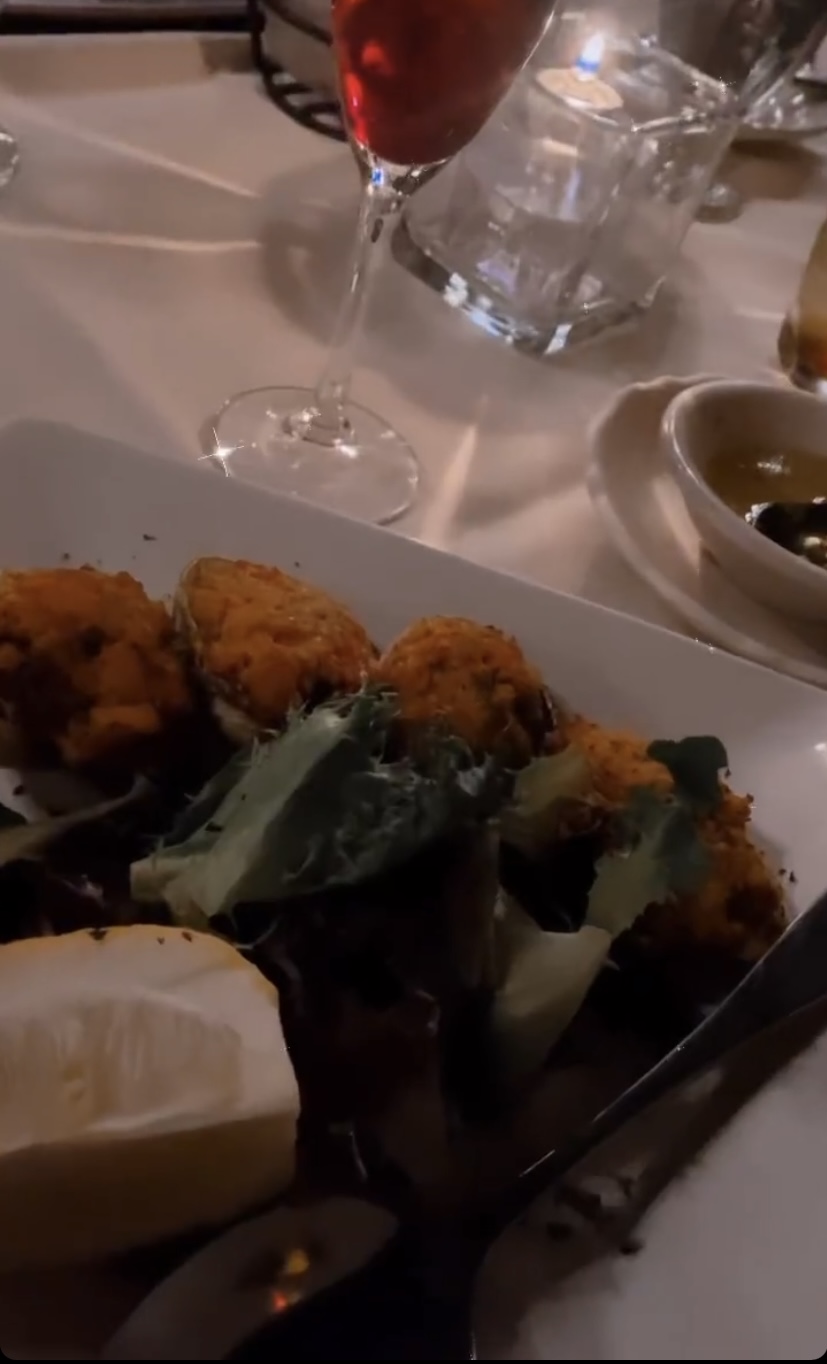 My friend had a meal with gnocchi and mozzarella: she didnt eat much of it. None at all really. It was odd how the cheese was so hard in the center of the meal rather than oozing. …She also got the stuffed risotto balls which was to have different cheeses in there with peas and ham chunks. There wasn’t any ham and seemed to be just mozzarella and peas. Good if advertised this way, but it didn’t meet the expectations of how it was described on the menu.
