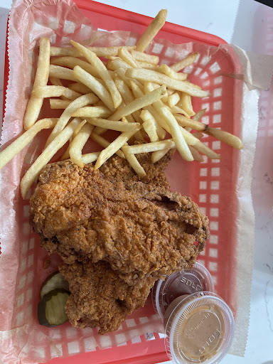 Read moreWe stopped in to try Nu Chicken and just picked up 2 tenders and a side of fries. The service was friendly and attentive. It seemed slow and still took 15 minutes, but good food takes time. We got 1 plain and 1 medium (meteor shower.) The chicken was juicy and crispy and amazing. The fries were shoestring, hot and crispy. The meteor sauce was zesty and creamy. I stopped in the bathroom and it was clean and big and bright with a changing table. There was limited seating, not enough for my big family so we would have to stick with takeout or date night with the hubby. I saw a sundae made with custard and it looked amazing. We will be back for that. Why four stars? It was $16 for just the one small meal that wouldnât have filled my teensâ bellies. That didnât include a drink and tip, either. If Iâm spending more than $20/pp, itâs going to be an experience where we can sit and talk and it will fill them up. I will be stopping in to treat kids or get frozen custard. But we wonât be getting full dinners here due to the high price for small...