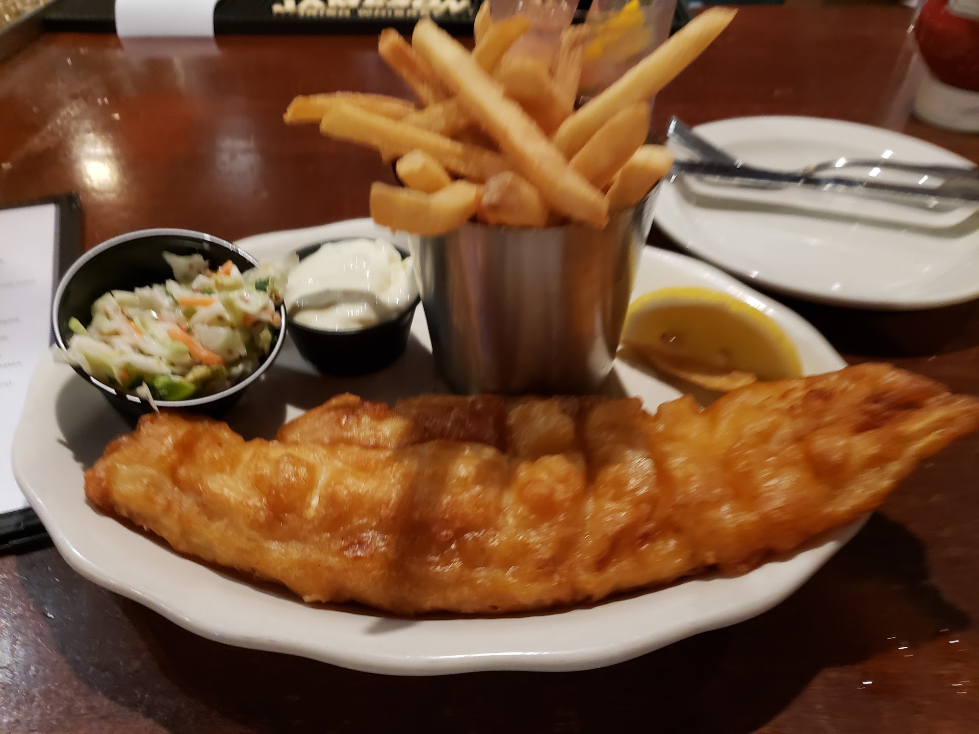 Great service, EXCELLENT specialty drinks menu and the fish and chips were just lovely. The chips had a nice crisp exterior and fluffy interior, they were just right. The fish had a beautiful coating not too crunchy, a really enjoyable texture. My husband had the ribs which he enjoyed thoroughly. It was overall a very pleasant experience. I'd give an extra star for the cocktails if I could ,the selection on 03Aug19 was outstanding. Glad we live in the neighborhood so we can go back and work our way through the list. Especially since we can have satisfying dish to go with it. My only regret is being too full for dessert. I love bread pudding and O'connor's is one of the few places that serves it. Thanks OC for a...