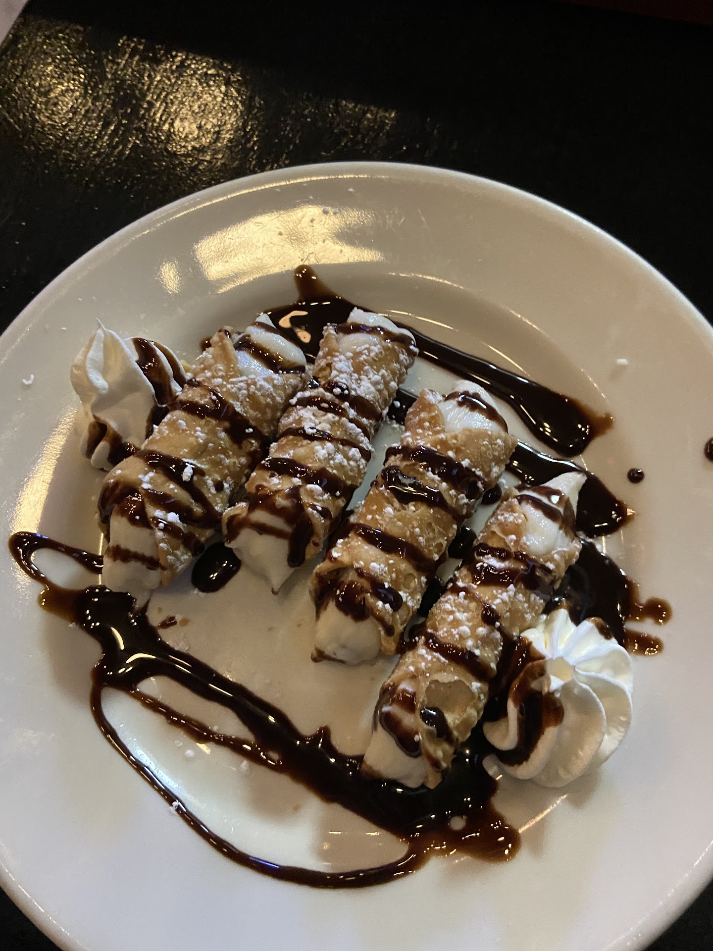 I would give this review one star if it weren’t for the cannoli dessert. It was probably one of the better cannolis I’ve tried. The pizza was also good, nothing special really just a little salty. For appetizers we got french fries, the stacked eggplant, and the bruschetta. The fries were actually very good but similar to bowling alley fries (aka good and salty). The bruschetta tasted burnt and the tomatoes tasted like nothing, also I don’t know if anyone there went to culinary school but the onions for it where chopped so poorly it was uncomfortable to eat. The “eggplant” was probably the worst part of our meal. There was zero eggplant in it. Like absolutely nothing. It just tasted like a stale salt less uncooked fried dough in equally unsalted red sauce. It was so awful. Also they didn’t have lemonade as a drink option, only alcoholic drinks and Pepsi products. They also served all of their sides like ketchup or red pepper flakes in small plastic containers which was an utter waste of plastic and disappointing to see they couldn’t take the extra effort and replace it with reusable glass containers like the use for the parmesan cheese. We called im advance as well to make sure we didn’t need reservations and the person on the phone said today it was “walk in only” but when we arrived the first thing we were asked is if we had a reservation and that the wait would be about 20 minutes. Overall I will not be...