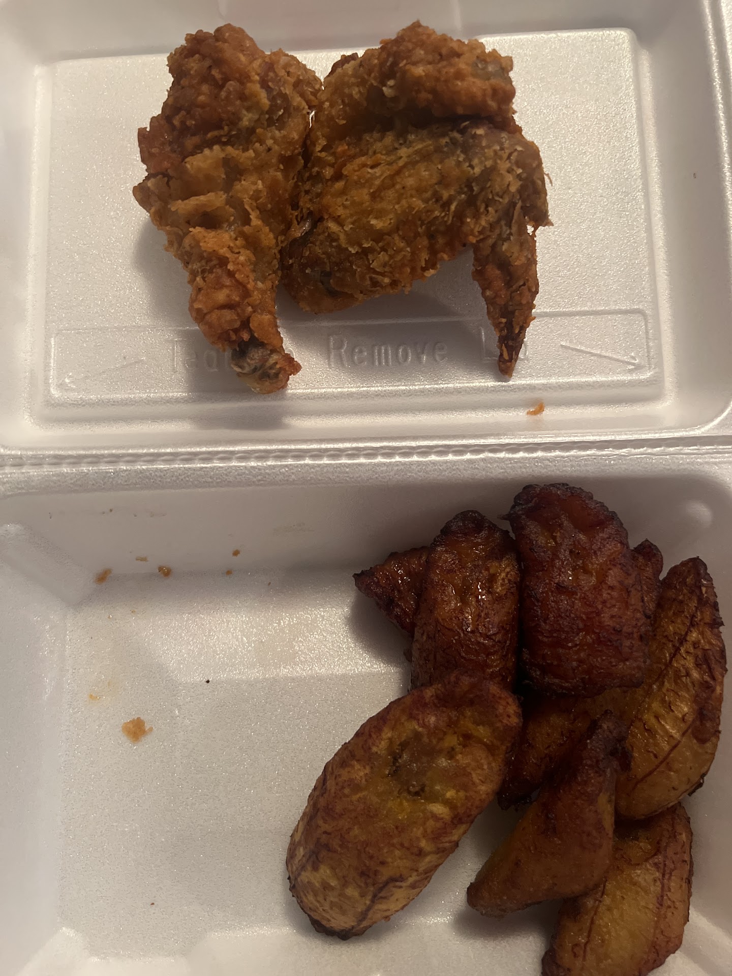 Ā Ā Ā Read moreFried sweet plaintains were delicious. Chicken was ok. 2 star rating is for their portions and menu description. For $19 I got the 8 piece chicken with 2 sides: 3 small drumsticks, 3 wings, 1 breast, 1 thigh. Seriously? 8 pieces should be the whole chicken no? 2 breast, 2 thigh, 2 drumstick, 2 wings equal 8 pieces. Also be warned that the $19 8 piece 2 side combo doesn't include all the items under the Menu category "SIDES." For example, rice and beans are not included as a "SIDE." On their website, it says under fried chicken... "Of course, it is impossible to select such goodness and not have a side that is why you can select our combos with any sides you wish to have." So I don't know if the service person was told the wrong information or just flat out lied. But I will not...
